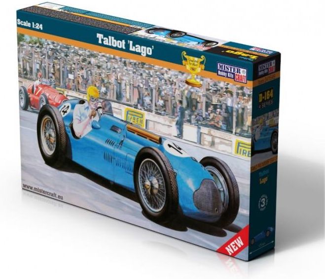 Talbot Lago, D-164, 1:24 Plastikowy model do sklejania. Model samochodu wyścigowego z okresu lat 50.Zestaw zawiera: – plastikowy model, – instrukcję montażu, – naklejki, – klej, – pudełko. Cechy produktu: – skala: 1:24, – poziom trudności: 3, – ilość elementów: 55, – malowania: zwycięzca Grand Prix …