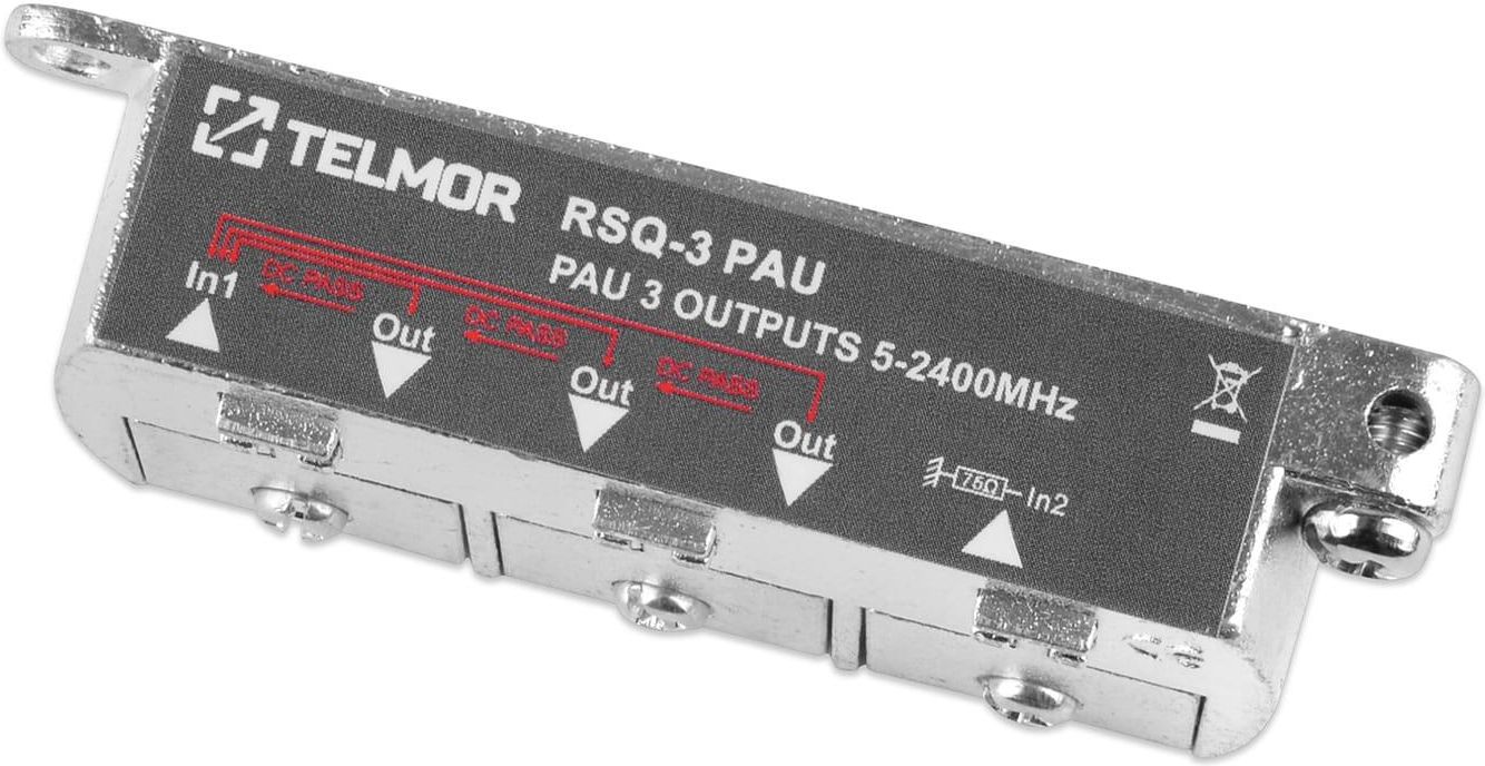 Telmor RSQ-3 PAU Quick Splitter Rozgałęźnik telewizyjny potrójny 3X 2.4G Odgałęźniki i rozgałęźniki wewnętrzne TELMOR serii RS/RSQ i TS/TSQ są stosowane w koncentrycznych sieciach dystrybucyjnych SAT-IF pracujących z sygnałami DVB-S/S2 (QPSK, 8PSK) i/lub z sygnałami cyfrowej telewizji naziemnej …