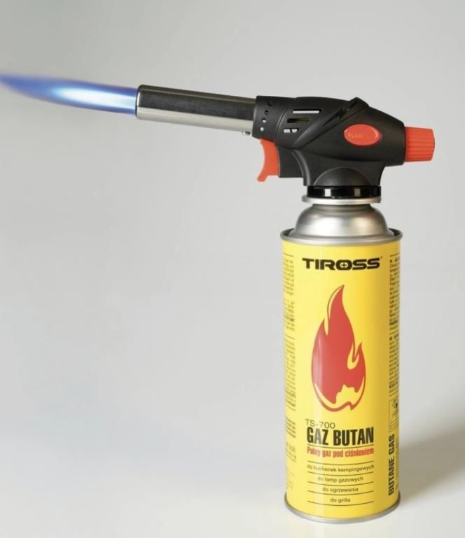 PALNIK GAZOWY NA GAZ KARTUSZE TIROSS TS-705 + 4GAZ ts700 Podręczne i Skuteczne Palniki gazowe zasilane są gazem propan-butan lub butan. Po założeniu w prosty sposób na kartusz wypełniony gazem, są gotowe do pracy, Cechą charakterystyczną palników jest ich zróżnicowane zastosowanie. Palniki zostały wyposażone w zawór, którym w szybki i dokładny sposób wyregulujesz przepływ gazu. Dzięki temu dostosujesz intensywność płomienia dochodzącego do 1300°C w/g własnych potrzeb. Dodatkowo Otrzymujesz 6szt. Kartusze/Naboje z Gazem Doskonale sprawdzą się podczas Odmrażania, Lutowania, Usuwania farb, Opalania, Rozpalania kominków oraz grilli. Cechy palników Certyfikat CE. Duża moc skutecznie rozgrzewa lub przetapia materiał. Płynnie regulowany płomień. Łatwy i oszczędny w użyciu. Niewielka waga i rozmiar zwiększają mocno komfort pracy. Wysoka jakość użytych materiałów do produkcji tych palników gwarantuje długą i bezproblemową pracę. Przeznaczenie i Zastosowanie Prace jubilerskie. Rękodzieło. Modelarstwo. Gastronomia. Opalanie niewielkich powierzchni metalowych lub drewnianych. Rozpalanie kominków, grilli, pieców. Gięcie i formowanie na ciepło. Zgrzewanie i klejenie na ciepło. Odkręcanie zapieczonych śrub. Podgrzewanie i rozmrażanie. Obkurczanie materiałów termokurczliwych. Uniwersalne i Niezawodne Uniwersalne Kartusze Gazowe z Butanem Renomowanej Polskiej Marki 227g/400ml. Działają Nawet w Niskich Temperaturach.! :) Naboje z Butanem mają wymiar uniwersalny, stąd też pasują do wszystkich Kuchenek Turystycznych, Palników, Grilli czy Piecyków Gazowych, zasilanych przez Kartusz z Gazem. Specyfikacja Kartusza z Gazem Gaz: butan Waga netto: 227g - 400ml Wymiar kartusza: 18,5 x 6,5 cm Czas ciągłego użytkowania zależny od temperatury, wydatku energetycznego oraz charakteru pracy. Do 4 godzin ciągłej pracy przy przy mocy 1,65 kw! Kartusz jest bardzo praktyczny i łatwy w użyciu Certyfikat - APRAGAZ na całą UE - normy UN2037, EN417 Wszystkie wymiary podane w przybliżeniu - rozmiar jest znormalizowany. W zestawie Palnik Wielozadaniowy (Opalarka). 1szt. Palnik Gazowy Tirosss 360° (Lutownica). 1szt. Kartusz / Nabój z Gazem. 4szt. Alpen Camping lub Tiross. Zapewniamy bezpieczne pakowanie przesyłek i ich dostarczenie do klienta.! Dbamy o najwyższą jakość naszych usług i satysfakcję klienta !!!
