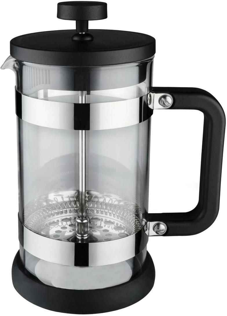 Zaparzacz do kawy, typu French Press, w sam raz do śniadania w domu lub w czasie przerwy w pracy. Zaparzenie w nim kawy bez fusów potrwa tylko chwilę. Na dno wsyp najlepiej świeżo mieloną czarną kawę, zalej gorącą, ale nie wrzącą wodą, zostawiając ok. 2,5 cm wolnego miejsca, poczekaj chwilę, aż kawa się zaparzy. Następnie nałóż pokrywę i powoli dociśnij tłok, spychając fusy na dno zaparzacza. Zaparzacz ma pojemność 600 ml - ok. 5 filiżanek. Dzbanek jest wykonany z borosilikonowego, żaroodpornego szkła, sitko natomiast ze stali nierdzewnej. Posiada obejmy ze stali nierdzewnej w wysokim połysku, nadającą zaparzaczowi nowoczesnego i oryginalnego wyglądu. Rączka jest wykonana z czarnego tworzywa sztucznego, przyjemnego w dotyku. Wyposażony jest również w antypoślizgową podstawę zabezpieczającą spód zaparzacza. Przepis na pyszną i aromatyczną kawę zaparzoną przy użyciu tego zaparzacza: Na dno dzbanka wsyp 7 gram (na jedną porcję) najlepiej świeżo zmielonej kawy o Twoim ulubionym aromacie. Dla dzbanka o pojemności 600 ml rekomendowana ilość kawy to 35 gram. Zalej kawę gorącą wodą w ilości 100 ml na jedną porcję, w tym dzbanku będzie to maksymalnie 500 ml. Delikatnie przemieszaj kawę i odczekaj około 4 minuty, aby kawa się zaparzyła i nasyciła napar smakiem. Teraz możesz włożyć do dzbanka pokrywę i delikatnie opuszczać tłok, aby fusy kawy zepchnąć na dno. Smacznego!