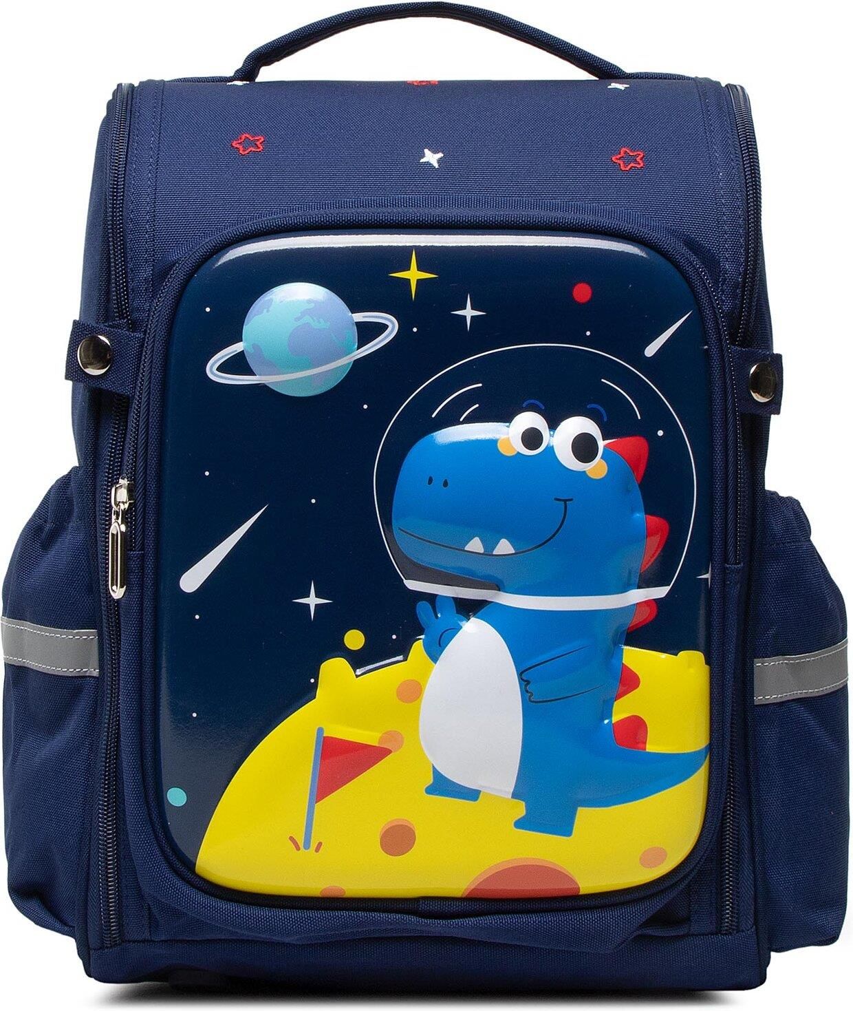 Ten plecak to doskonały wybór dla Twojej pociechy. Motyw dinozaura to interesujący element dekoracyjny. Za sprawą granatowego koloru jest on niezwykle uniwersalny. Najważniejszą zaletą są elementy odblaskowe. Dodatkowym atutem jest klamra spinająca szelki na brzuchu, dzięki czemu nie będą one się zsuwać z ramion dziecka. Dodatkowe przegródki pozwolą zorganizować przestrzeń w plecaku. Ważnym elementem jest zewnętrzna kieszeń na wodę. Z powodzeniem sprawdzi się do szkoły, na rodzinną wycieczkę, czy też spacer. Do czyszczenia najlepiej sprawdzą się nawilżane chusteczki.