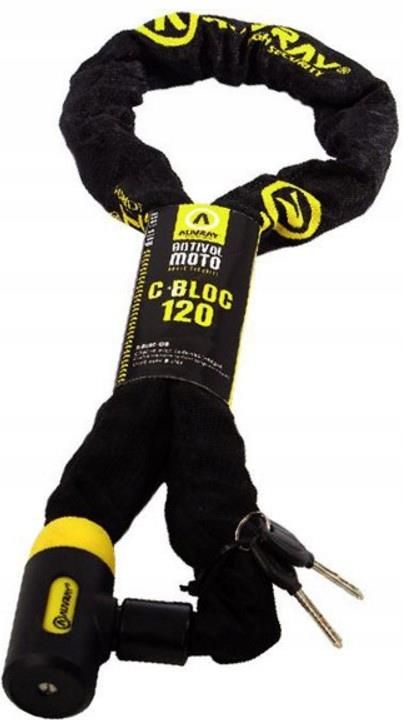 AUVRAY C-BLOC 120 łańcuch z zamkiem - długość 120cm, średnica 10mm CBL120AUV10 AUVRAY C-BLOC 120 łańcuch z zamkiem - długość 120cm, średnica 10mm Specyfikacja: kod producenta: CBL120AUV10 długość: 120cm średnica ogniwa: 10mm wykonany ze stali hartowanej pokryty nierysującym materiałem ochronnym odporny na warunki atmosferyczne zamek zintegrowany z łańcuchem gniazdo zamka zamykane panelem ochronnym typ zamka: na kluczyk 2 kluczyki w zestawie 2 lata gwarancji waga: 2,45kg Dostępna również wersje w innych rozmiarach: CBL90AUV06 - długość: 90cm średnica ogniwa: 6mm CBL100AUV08 - długość: 100cm średnica ogniwa: 8mm O Firmie AUVRAY AUVRAY to francuska firma, która od ponad 40 lat projektuje i produkuje jedne z najlepszych zabezpieczeń antykradzieżowych do motocykli, skuterów i rowerów. W jej szerokiej ofercie znajduje się prawie 150 rodzajów disc-locków, u-locków, kłódek, łańcuchów, linek, blokad składanych, kotw i innych zabezpieczeń antykradzieżowych. Dzięki doskonałej znajomości najnowszych technologii firma AUVRAY gwarantuje, że jej zabezpieczenia reprezentują najwyższy poziom bezpieczeństwa i jakości wykonania. O Firmie Auvray Auvray to francuska firma która od ponad 30 lat konstruuje i produkuje jedne z najlepszych zabezpieczeń antykradzieżowych do motocykli. Dzięki doskonałej znajomości najnowszych technologii, Auvray zapewnia bezpieczeństwo najwyższej klasy. Najmocniejsze materiały, szeroki zakres wyboru zamków pozwala na tworzenie blokad które cechuje dokonała jakość i najwyższy poziom bezpieczeństwa.
