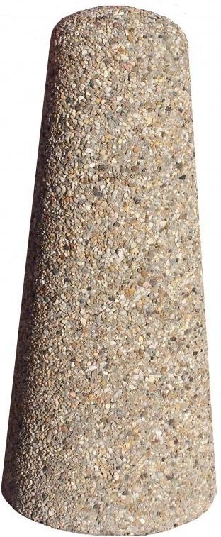 Słupek parkingowy Wysokość (cm): 80 Średnica górna (cm): 20 Średnica dolna (cm): 35 Waga około (kg): 115 Materiały: kamień płukany, grysy Możliwość montażu uchwytów na łańcuchy-w cenie 9 zł za jedno ucho Sposób przytwierdzenia do podłoża za pomocą pręta metalowego dołączonego w komplecie. Dostępne kolory: Kamień rzeczny Kamień rzeczny barwiony na czerwono Grys biało - czarny 1 Grys czarno - biały 2 Grys granitowy Grys sjenitowy Grys biały Grys biały na białym cemencie