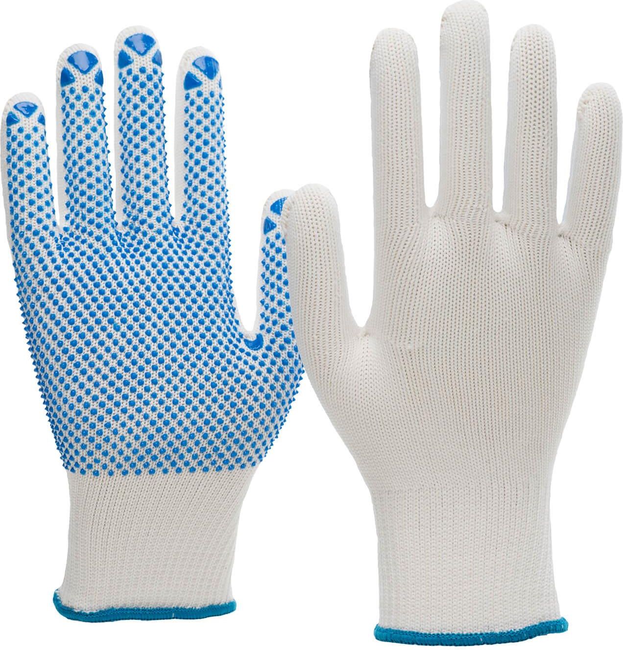 Rękawice robocze montażowe Nitras 6100 w kolorze białym, dziane, wykonane z nylonu i bawełny. Na wewnętrznej stronie rękawic znajdują się niebieskie nakropienia z PCV, które poprawiają chwyt. Dzięki dzianym ściągaczom rękawice robocze Nitras 6100 doskonale dopasowują się do dłoni, zapewniając duży komfort użytkowania. Cechy i zalety produktu: Nakropienia z PCV Dziany ściągacz Odporność na rozdarcie Zastosowanie: Przeznaczone do wszelkich prac montażowych z małym ryzykiem obrażeń mechanicznych. Materiał: Nylon/bawełna z nakropieniami z PCV Dostępne rozmiary: 6 – 11 Opakowanie zbiorcze: 240 par w kartonie (12 par w opakowaniu) Normy i certyfikaty: EN 420 | EN 388 [2142X]