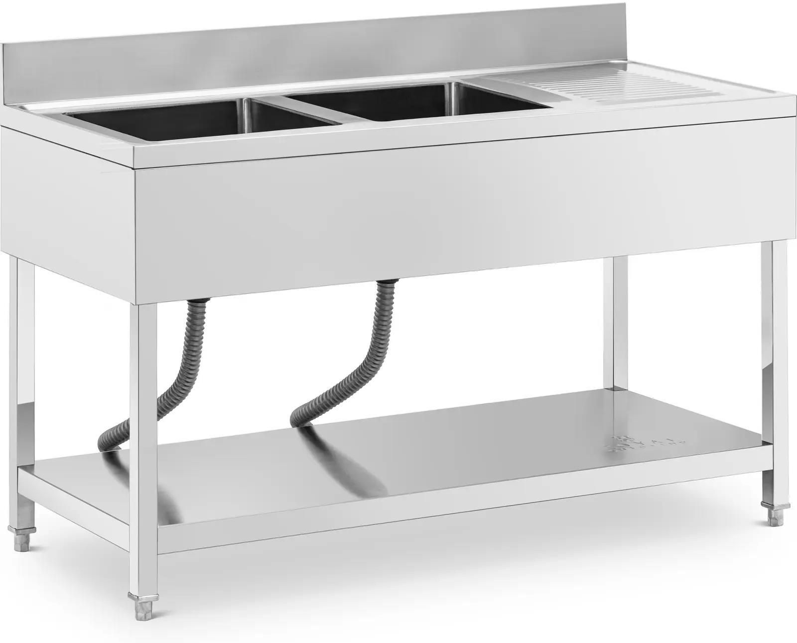 Royal Catering Stół Ze Zlewem - Dwukomorowy - Stal Nierdzewna - 140X60X97Cm (RCGS2B1400D6) Bytom Odrzański
