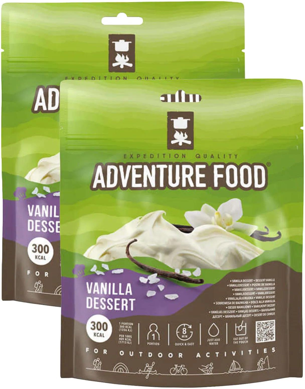 Zestaw 2 opakowań pełnowartościowego i łatwego w przygotowaniu posiłku liofilizowanego. Dzięki odpowiedniemu zbilansowaniu proporcji węglowodanów i witamin posiłek pomaga w pełni zregenerować siły po nawet najbardziej wymagającej wyprawie. Kremowy deser waniliowy na bazie świeżego jogurtu. Produkty Adventure Food zachowują pełnię walorów smakowych oraz wizualnych, dorównując tradycyjnie przyrządzonemu posiłkowi.