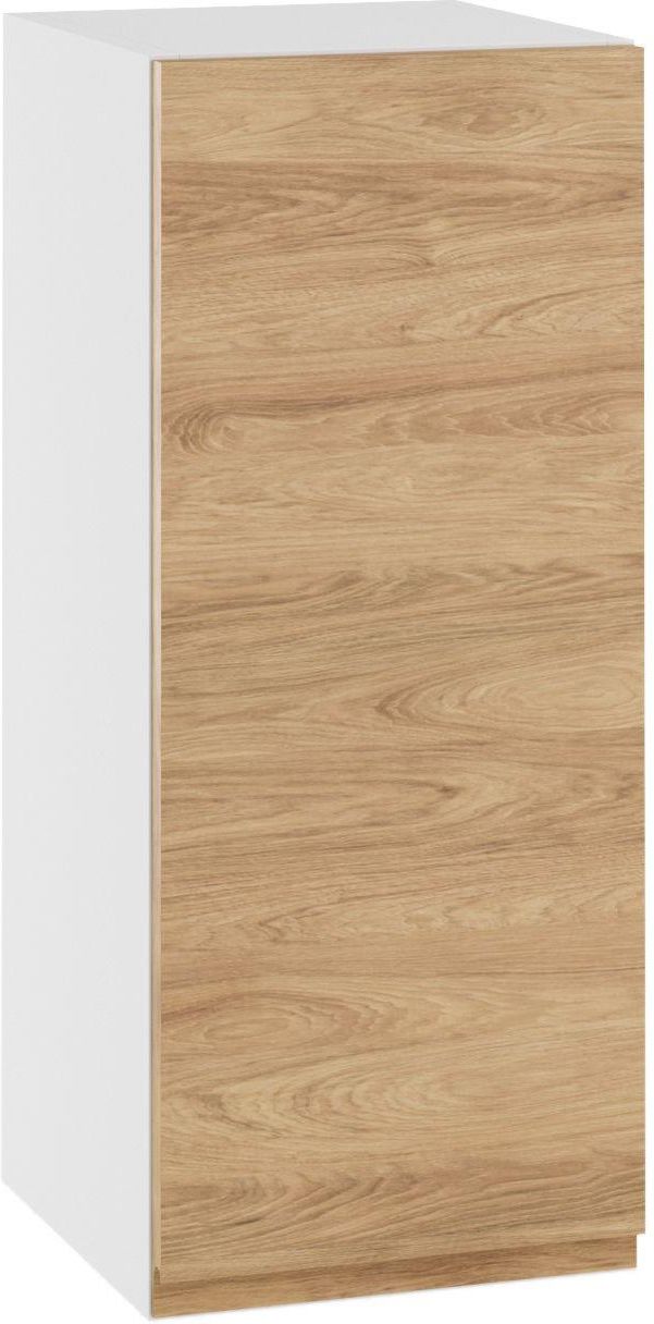 ALBA SZAFKA WISZĄCA PRAWA G-30 HIKORA to model szafki wiszącej do kuchni z drzwiami uchylnymi prawostronnie oraz minimalistycznym uchwytem frezowanym. Produkt z systemem cichego domknięcia drzwi zapewnia komfort użytkowania. Szafka wisząca do kuchni mierzy 30 cm szerokości, 72 cm wysokości oraz 32 cm głębokości. Kolekcja kuchni Komfort powstała z odpornej na czynniki mechaniczne płyty laminowanej. Korpus szafki wiszącej posiada biały kolor powierzchni, zaś front prezentuje drewnopodobną strukturę wiernie odzwierciedlającą powierzchnię naturalnego drewna. Meble kuchenne w stylu nowoczesnym łączą prostą formę z przytulnym i naturalnym wykończeniem charakterystycznym dla szafek w stylu skandynawskim.