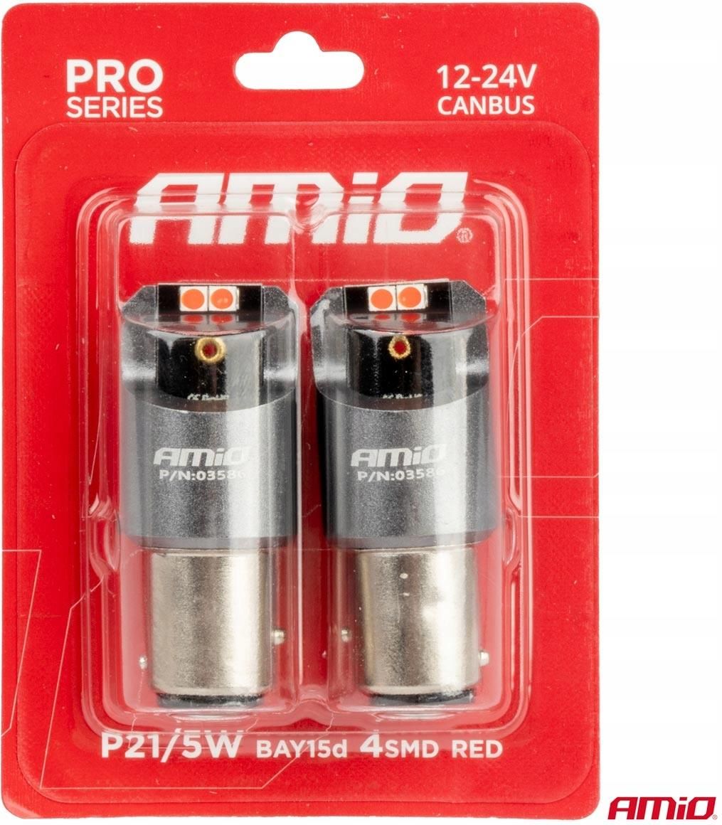Żarówki LED CANBUS seria PRO BAY15D P21/5W 4x3030 SMD Red 12V 24V AMIO-03586 Kod produktu: 03586 Opis produktu Żarówki samochodowe LED marki AMiO są nowoczesnym rozwiązaniem wykorzystującym technologie diod LED. Użyte diody emitują czerwoną barwę światła oraz są pozbawione efektu mrugania. Wysoka jakość wykonania gwarantuje żywotność żarówek do 50 000 godzin, a specjalny układ zasilania nie wymaga przerabiania instalacji elektrycznej w samochodzie umożliwiając bezproblemowy montaż w tradycyjnych oprawach świetlnych, gdzie wcześniej były wykorzystywane zwykłe żarówki. ZALETY ŻARÓWEK LED dłuższa żywotność w stosunku do żarówek standardowych niższy pobór prądu szybszy czas włączania/wyłączania odporność na wstrząsy łatwy montaż atrakcyjny wygląd DANE TECHNICZNE typ: P21/5W BAY15D zasilanie: 12V/24V rodzaj diody: 4x3030 SMD ilość diod: 4 barwa światła: czerwona canbus: tak opakowanie: 2 szt.