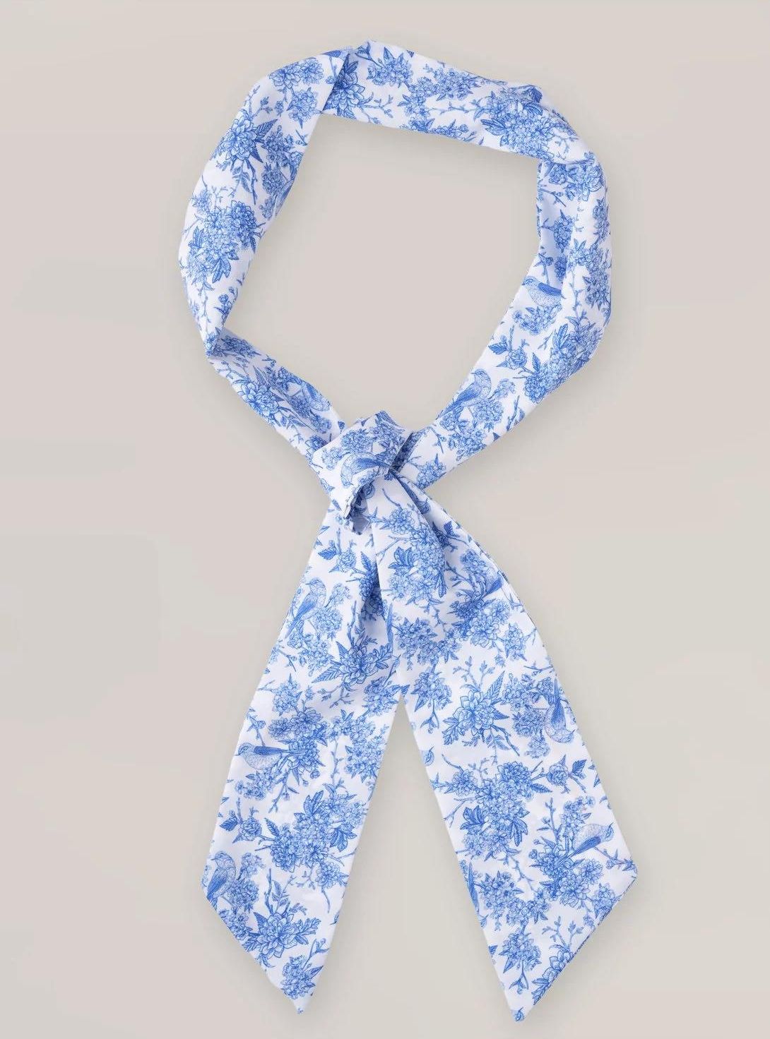 Apaszka damska Apaszka w formie wąskiego, lekkiego szaliczka, wykonana z microfibry z kolorowym printem. Jej forma sprawia, że można ją nosić na wiele sposobów: jako tradycyjną apaszkę na szyję, kokardę do koszuli, ozdobę do włosów, ozdobę na nadgarstek lub torebkę, jako pasek do spodni lub sukienki. Tkanina: 100% microfibra Kolor: biała w niebieskie kwiaty Wymiary: 107 cm x 6,5 cm 2-letnia gwarancja Willsoor Wyprodukowana w Polsce