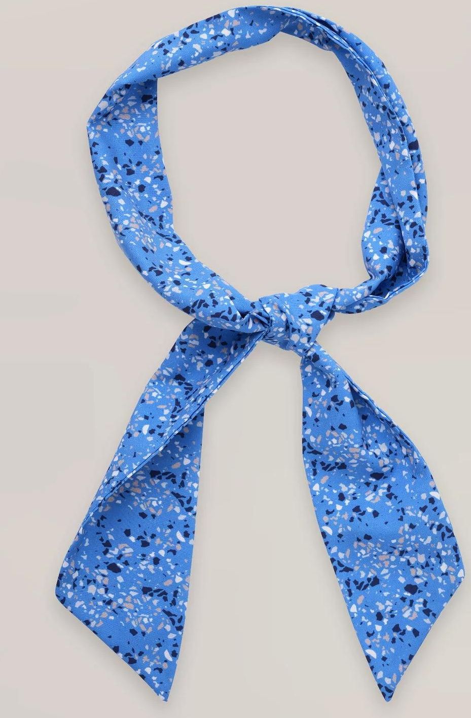 Apaszka damska Apaszka w formie wąskiego, lekkiego szaliczka, wykonana z microfibry z kolorowym printem. Jej forma sprawia, że można ją nosić na wiele sposobów: jako tradycyjną apaszkę na szyję, kokardę do koszuli, ozdobę do włosów, ozdobę na nadgarstek lub torebkę, jako pasek do spodni lub sukienki. Tkanina: 100% microfibra Kolor: niebieska w kolorowe plamki Wymiary: 107 cm x 6,5 cm 2-letnia gwarancja Willsoor Wyprodukowana w Polsce