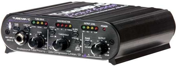 lampowy przedwzmacniacz z kompresorem optycznym Tube MP/C - to małe urządzenie to już nie tylko lampowy przedwzmacniacz, ale również kompresor optyczny. Urządzenie wyposażono w wejścia/wyjścia XLR oraz jack 1/4", zasilanie Phantom +48V, przełącznik fazy sygnału, filtr dolnoprzepustowy, osobną regulację poziomu wejściowego i wyjściowego . Doskonale sprawdzi się w domowym studiu nagraniowym jako przedwzmacniacz mikrofonowy i instrumentalny, ale również jako lampowy DI-Box. Frequency Response: 30 Hz - 60 kHz +/- 1 dB balanced output, 20 Hz - 60 kHz +/- 1dB 1/4" output Total Harmonic Distortion: <0.1% @ max gain CMMR: > 60 dB @ max gain Equivalent Input Noise: -128dBu typical ("A" wtd., Shorted XLR balanced input, gain @ max) Input Impedance: 1M Ohms 1/4" input, 5K Ohms XLR input Input/Output Connections: Input: XLR balanced or 1/4" balanced. Output: 1/4" unbalanced XLR balanced, transformer isolated. Maximum Gain: +80 dB (balanced in-out, +64dB (unbalanced input, balanced output) Maximum Input Level: unbalanced (Inst): +15 dBu, balancd (mic): +10 dBu Maximum Output Level: +19 dBu (Line mode) Output Impedance: XLR: <600 Ohms, 1/4": <300 Ohms Low Cut Filter: -3 dB @ 70 Hz, 6dB/Octave Phantom Power: Switch selectable, +48Volts DC, filtered, current limited Chassis Type: All aluminum black anodized with integral rubber sides Power Requirements: 9VAC @ 1000mA (external) Attack Time: <1 ms (limit), 20 ms (comp.) Release Time: 150ms (fast), 20ms - 3s Program dependant (Auto) Tube Type: Hand selected 12AX7a Compressor Slope: 2:1 (Comp.) / 11:1 (Limit) Dimensions: 1.75"H x 5.9" W x 6.5" D (44.5mm x 150mm x 165mm) Weight: 2.9 lbs (1.32 kg) Notes: 0dBu = 0.775V rms Weight includes power supply and packaging: