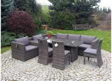 BelGiardino - meble ogrodowe z technorattanuDzięki zdobytemu na przestrzeni lat doświadczeniu jesteśmy w stanie dostarczyć główne elementy aranżacji ogrodów, tarasów oraz balkonów. Z roku na rok staramy się dopracowywać naszą kolekcję, odpowiadając na potrzeby klientów i zmieniające się trendy. Polecamy wysokiej jakości meble ogrodowe z technorattanu, które w każdej chwili dostosować można do aktualnych potrzeb. Skład kompletu jeden stolik boczny z blatem z hartowanego szkła o grubości 5mm; jeden stół prostokątny z blatem z hartowanego szkła o grubości 5mm; jeden narożnik z blatem z hartowanego szkła o grubości 5mm; dwa narożniki z poduszkami w kolorze SZARY GRAFIT i o grubości 10cmlubjeden narożnik z poduszkami w kolorze SZARY GRAFIT i o grubości 10cm oraz jeden narożnik z blatem z hartowanego szkła o grubości 5mm; trzy elementy środkowe z poduszkami w kolorze SZARY GRAFIT i o grubości 10cm; trzy krzesła z poduszkami w kolorze SZARY GRAFIT i o grubości 10cm; opcjonalne trzy dodatkowe elementy środkowe; opcjonalny dodatkowy pokrowiec w kolorze GRAFIT. Zalety kompletu odporność na działanie promieni UV; odporność na warunki atmosferyczne; elegancka plecionka; niepowtarzalne wzornictwo; wzmocniona konstrukcja stelaża; rama aluminiowa, malowana proszkowo; dodatkowe wzmocnienia zapewniają długotrwałą wygodę i komfort użytkowania mebli ogrodowych. Materiały i wykonanieKomplet mebli ogrodowych MILANO BIG marki BelGiardino jest wykonany z PÓŁOKRĄGŁEGO technorattanu w kolorze SZARY BRĄZ i o grubości 6mm, który jest doskonałą imitacją naturalnego rattanu. lekkie stelaże są wykonane z aluminium malowanego proszkowo; konstrukcja mebli ogrodowych jest ręcznie opleciona wspomnianym rattanem PE, co potęguje efekt naturalności; technorattan cechuje się wyjątkową lekkością oraz wytrzymałością na warunki atmosferyczne, takie jak deszcz i śnieg; dzięki zastosowaniu nowego, syntetycznego materiału uzyskano doskonałą jakość oraz wytrzymałość; w komplecie znajdują się poduszki, które wytworzono z wodoodpornego materiału. Zapewniają one komfortowe użytkowanie zestawu; wszystkie pokrowce na poduszki są zaimpregnowane, dzięki czemu są odporne na warunki atmosferyczne oraz poplamienia, dzięki czemu przypadkowo wylane napoje nie stanowią już żadnego problemu; zastosowany zamek błyskawiczny daje możliwość szybkiego zdjęcia i wyczyszczenia każdej poszewki. UwagaW wyniku działania promieni słonecznych oraz wysokich temperatur może występować efekt "falującego" rattanu na blacie stołu. Dzieje się tak z powodu skupiania energii słonecznej przez szybę. Efekt ten jest odwracalny - obniżenie temperatury skutkuje natychmiastowym powrotem do pierwotnego stanu. Zalecamy ustawić zestaw pod zadaszeniem lub w zacienionym miejscu.