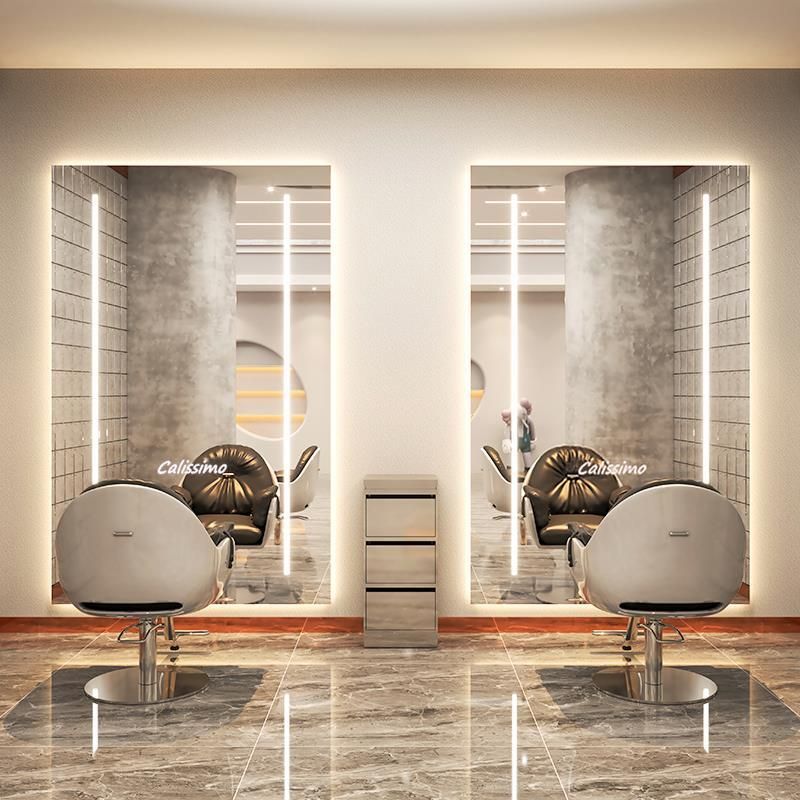 Końcówki pasów oświetleniowych mogą posiadać nieregulane zakończenie niewpływające na użytkowanie lustra. Konsola fryzjerska lustro barberskie podświetlane LED Niezwykle eleganckie lustro LED z wbudowanym oświetleniem wewnątrz tafli. Zbliżone pasy oświetleniowe do środka lustra doskonale rozświetlają odbicie oraz całe pomieszczenie, w którym się znajdują. Dodatkowo, po przytrzymaniu przycisku, wbudowane oświetlenie LED stopniowo się ściemnia, umożliwiając regulację natężenia światła zgodnie z indywidualnymi potrzebami. Lustro znakomicie prezentuje się zarówno w niewielkichprzestrzeniach optycznie je powiększając swoim odbiciem a także w dużych pomieszczeniach, gdzie z pewnością będzie jednym z dominującychelementówwystroju. Funkcjonalność i atrakcyjny wygląd to główna zaleta konsolety. Duże lustro wraz z panelem LED zostanie docenione przez każdego fryzjera dla którego liczy się komfort wykonywanej pracy. Ma bardzo oryginalny kształt i uniwersalny design. Posiada włącznik do oświetlenia led wbudowany w tafle lustra. Do wyboru barwa diod Zimna Neutralna Ciepła Wymiary Wysokość: 200cm Szerokość: 100cm