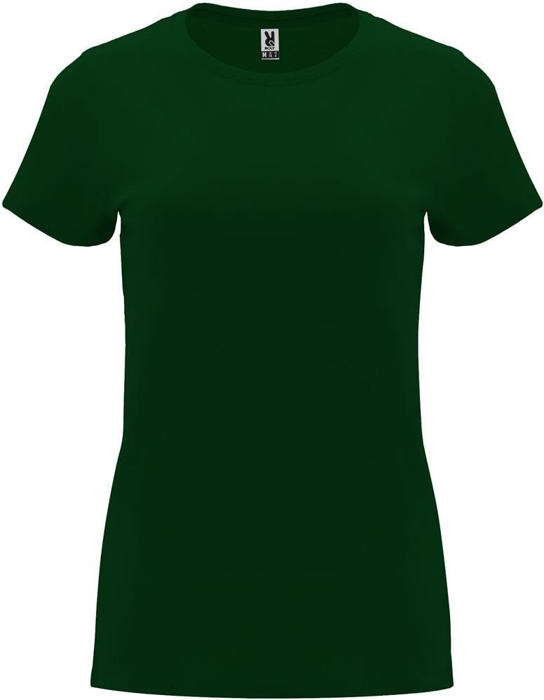 Damska dopasowana koszulka z krótkim rękawem. Okrągły prążkowany dekolt 1x1. Wzmocnione, kryte szwy na kołnierzu. Usuwalna metka.