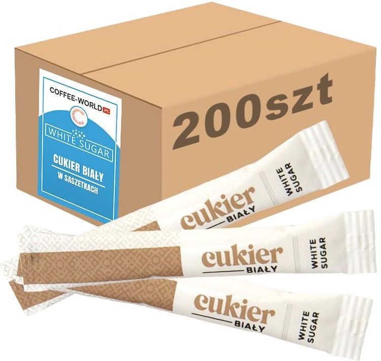 Producent: Braco Rodzaj: cukier biały Typ opakowania: saszetki (paluszki) Opakowanie zbiorcze: 200 sztuk Waga: 200 x 4g (800g)