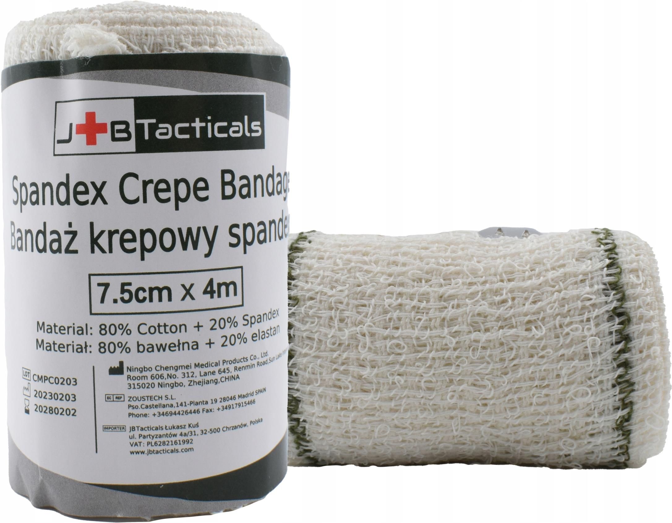 Przedmiotem aukcji jest JB Tacticals Bandaż krepowy spandex 7,5 cm x 4 m. Niezbędny element wyposażenie apteczki IFAK. Materiał: 80% bawełny + 20% elastanu. Gęstość : 75g/m2 W zestawie 2 metalowe zapinki. Bandaż "crepe" to rodzaj bandaża wykonanego z tkaniny bawełnianej, który ma charakterystyczny pofałdowany wygląd i elastyczność. Bandaż "crepe" jest często stosowany w medycynie do opatrywania urazów i stabilizowania stawów. W przypadku opatrunku "Spandex Crepe Bandage 75g/m2 - 7.5cm x 4m", materiał spandexu dodaje dodatkowej elastyczności do bandaża crepe, co pozwala na swobodne ruchy kończyny, jednocześnie zapewniając jej wsparcie i kompresję. Waga 75g/m2 odnosi się do gęstości tkaniny - im większa waga, tym grubszy i bardziej wytrzymały jest materiał. Opatrunek o wymiarach 7,5 cm x 4 m jest odpowiedni do owijania kończyn, takich jak ręce lub nogi, w celu stabilizacji lub ochrony urazu. Elastic spandex crepe bandaż to kluczowy element apteczki IFAK (Individual First Aid Kit) dla każdego żołnierza. Ten elastyczny bandaż wykonany z mocnego i trwałego materiału zapewnia stabilność i ochronę uszkodzonych stawów i mięśni, co jest niezwykle ważne w przypadku kontuzji wyniesionej z pola bitwy czy też podczas treningu. Dzięki swojej elastyczności, bandaż może dostosować się do różnych części ciała, zapewniając idealne dopasowanie i pewność podczas ruchu. Krepa, z której wykonany jest bandaż, pomaga mu przylegać do skóry, zapewniając dodatkowe wsparcie i zapobiegając przesuwaniu się podczas aktywności. Elastic spandex crepe bandaż może być stosowany do leczenia różnych urazów, ale także jako zapobiegawcza ochrona przed kontuzjami. Jest to niezwykle przydatny produkt, który każdy żołnierz powinien mieć w swoim IFAK-u, aby zapewnić sobie bezpieczeństwo i ochronę w trakcie misji. Ten rodzaj opaski często jest stosowany do zapewnienia wsparcia i ucisku na urazach stawów i mięśni, takich jak skręcona kostka, kontuzje kolana i naciągnięte mięśnie. Może również pomóc w zapobieganiu urazom podczas aktywności fizycznej, zapewniając dodatkowe wsparcie i stabilność stawom. Bandaż crepe ze spandexem to elastyczna taśma z bawełny i dodatku spandeksu, która jest używana do owijania kończyn w celu stabilizacji lub ochrony urazu. Jest to miękki, elastyczny materiał, który pozwala na swobodne ruchy kończyny, a jednocześnie zapewnia jej wsparcie i kompresję. Opaska uciskowa, z kolei, to mocna, elastyczna taśma, która jest stosowana do zwiększenia przepływu krwi w określonej części ciała. Opaski uciskowe są często stosowane w sporcie i rehabilitacji, aby pomóc zmniejszyć ból, obrzęk i zapobiec urazom. Podsumowując, bandaż crepe ze spandexem jest stosowany do stabilizacji lub ochrony urazów, natomiast opaska uciskowa służy do zwiększenia przepływu krwi i zmniejszenia bólu i obrzęku.
