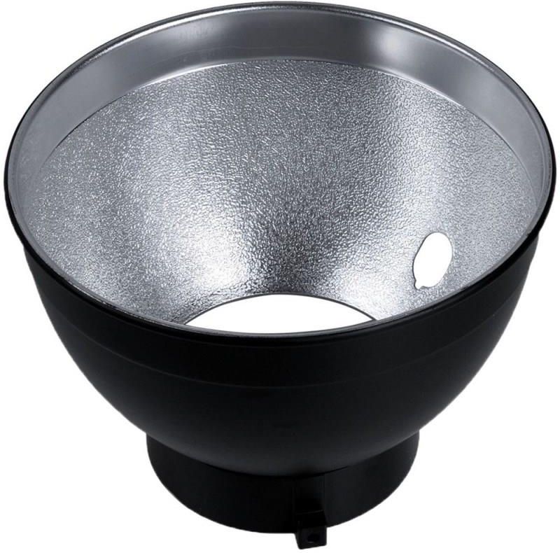 Standardowa czasza Godox 7 cali (~18cm) z mocowaniem Bowens. Teksturowane srebrne wnętrze i aluminiowa konstrukcja. Może być używana z parasolkami.     7-calowa standardowa czasza, wyposażona jest w mocowanie typu Bowens, dzięki czemu można ją dopasować do lamp studyjnych, lamp plenerowych i niektórych lamp światła ciągłego LED, które posiadają mocowanie Bowens. Odbłyśnik jest wykonany z lekkiego, ale wytrzymałego aluminium, srebrne wnętrze jest teksturowane dla równomiernego rozprowadzania światła. Podłużny otwór umożliwia stosowanie reflektora razem z parasolką.