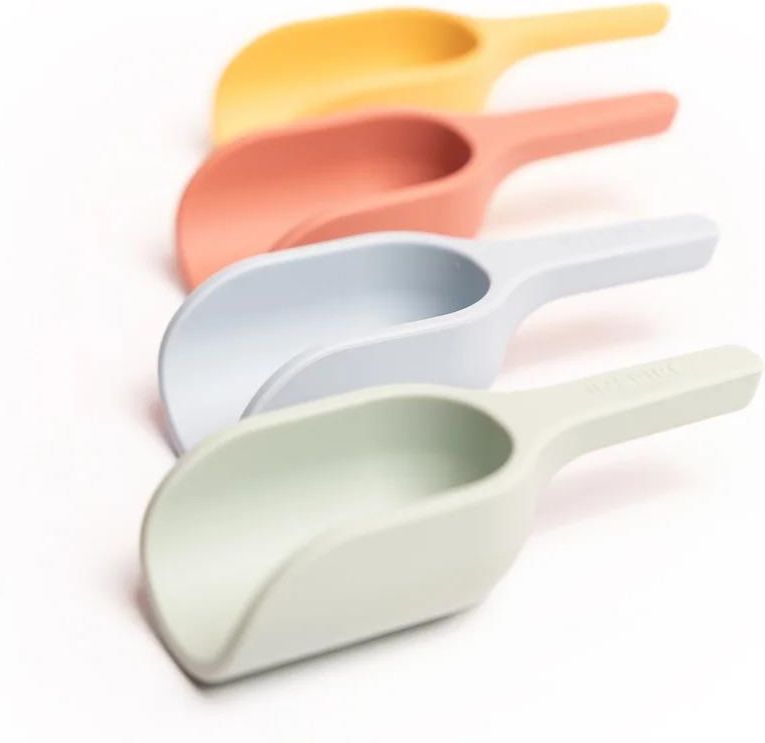 Zestaw tęczowych łopatek Zestaw tęczowych łopatek to komplet czterech silikonowych łopatek w żywych pastelowych kolorach, stworzony z myślą o najmłodszych użytkownikach już od 10 miesiąca życia. Łopatki doskonale sprawdzają się zarówno w zabawie na sucho (piasek, ryż, kasza, soczewica), jak i mokro (woda, barwniki spożywcze, piana), otwierając przed dzieckiem nieograniczone możliwości twórczej i sensorycznej aktywności. Dzięki bezpiecznemu, nietoksycznemu silikonowi spożywczemu, który jest odporny na ugryzienia, wysoka jakość materiału gwarantuje wielokrotne, higieniczne użytkowanie (możliwość mycia w zmywarce). Zestaw tęczowych łopatek przeznaczony jest zarówno do zabawy w domu, jak i do wykorzystania w placówkach edukacyjnych i terapeutycznych – przedszkolach, żłobkach, klubach malucha, salach integracji sensorycznej czy gabinetach terapii ręki. To idealne uzupełnienie zestawu PlayTRAY, które pozwala na stworzenie bogatego środowiska edukacyjnego, wspierając rozwój dzieci poprzez interakcję z różnorodnymi teksturami i kolorami. [ikony-produktu-opisy] Co zawiera? 4 silikonowe łopatki w kolorach koralowym, różowym, żółtym i miętowym Główne informacje Wiek: od 10 miesiąca życia Materiał: 100% silikon spożywczy, wolny od BPA, PVC i ftalanów Certyfikaty: spełnia normy bezpieczeństwa obowiązujące w UE, Wielkiej Brytanii, USA, Australii, Kanadzie i Japonii (CE, EN71) Dodatkowe cechy: odporne na ugryzienia, łatwe do mycia w zmywarce, bezpieczne w kontakcie z żywnością, lekko sztaplowalne Pomysły na zabawę „Kolorowe przesypywanie” – doskonalenie motoryki małej, rozwijanie percepcji wzrokowej, ćwiczenie koncentracji Przygotuj miseczki z różnokolorowym ryżem lub soczewicą. Dziecko przesypuje materiał między naczyniami za pomocą łopatek, sortuje na kolory lub tworzy warstwy – to ćwiczenie wzmacnia precyzję palców, uczy rozróżniania barw i wspiera skupienie uwagi. „Małe budowle w piaskownicy” – rozwój motoryki dużej, kreatywność, praca zespołowa Wyprowadź łopatki na zewnątrz do piaskownicy lub ogrodu. Dzieci kopią, przesypują piasek i formują proste konstrukcje – wały, tunele czy kopce. Można zaprosić rówieśników do wspólnej zabawy, co sprzyja integracji i rozwijaniu umiejętności współdziałania. „Eksperymenty z mąką i kaszą” – rozwijanie zmysłu dotyku, stymulacja sensoryczna, nauka faktur Rozsyp niewielką ilość mąki lub kaszy na stolnicy lub tacy. Dziecko nabiera suchy proszek łopatkami, miesza go, ubija i obserwuje powstające wzory. Zabawa pozwala poznać różnice w konsystencji i doznać kojącej faktury pod opuszkami palców.