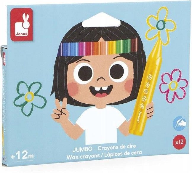 Zestaw 12 kredek woskowych francuskiej marki JANOD w pięknych, intensywnych kolorach. Kredki są grube, poręczne, z okrągłymi uchwytami. Zapakowane w estetyczne kartonowe pudełko z dziecięcą grafiką. Zestaw zaprojektowano we Francji. Idealnie nadaje się na prezent. Zabawka rozwija: - małą motorykę i …