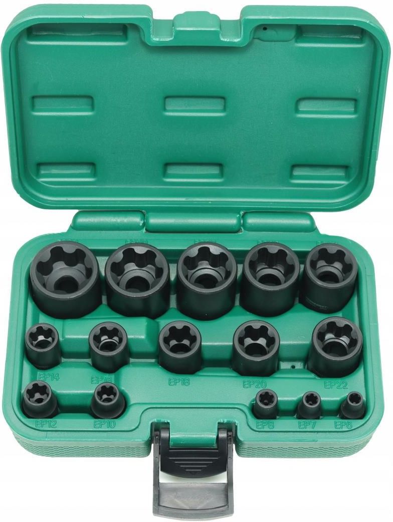 Nasadki E-Torx plus 1/4 3/8 1/2 15el JonneswayProfesjonalny zestaw nasadek E-Torx Plus marki Jonnesway to niezawodne narzędzie dla mechaników, serwisantów i majsterkowiczów, przeznaczone do pracy z nowoczesnymi połączeniami typu E-Torx (zewnętrzny Torx Plus), często spotykanymi w motoryzacji (szczególnie w autach marek: BMW, Mercedes, Opel, Ford), przemyśle i elektronice.Specyfikacja techniczna: Typ nasadek: E-Torx Plus (zewnętrzne) Ilość elementów: 15 sztuk Rozmiary i mocowania: 1/4": E4, E5, E6 3/8": E7, E8, E10, E12, E14 1/2": E16, E18, E20, E22, E24 Materiał wykonania: stal chromowo-wanadowa (CrV) – wytrzymała, odporna na zużycie Powierzchnia: matowa, satynowa lub chromowana (zależnie od partii) Opakowanie: solidna kaseta / organizer z tworzywa sztucznego lub metalowa walizkaZalety produktu: Kompletny zestaw 15 nasadek – od najmniejszych do największych rozmiarów Trzy rodzaje mocowań – do większości popularnych grzechotek Wysoka jakość Jonnesway – narzędzia klasy profesjonalnej Dokładne dopasowanie – zapobiega ślizganiu i uszkodzeniom śrub Torx Czytelne oznaczenia rozmiarów na każdej nasadce Poręczne etui – łatwe przechowywanie i transportZastosowanie: Motoryzacja – prace serwisowe, demontaż silników, zawieszeń Mechanika precyzyjna – urządzenia przemysłowe, elektronika Warsztaty samochodowe i serwisy ASO Prace domowe i garażowe – amatorskie i profesjonalne