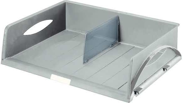 Półka na dokumenty Leitz Sorty Jumbo, A3, otwarta po dłuższym boku, szary Moduł do sortowania i koordynacji obiegu poczty lub innych dokumentów w biurze, recepcji, hurtowni itp. Do przechowywania dokumentów w formacie do A3. Możliwość przymocowania etykiety w dowolnym miejscu wzdłuż przedniej dolnej krawędzi gwarantuje szybką identyfikację zawartości. Dwa uchwyty umieszczone po bokach ułatwiają przenoszenie. Możliwość podziału półki za pomocą przegródki jedna w komplecie, na dwie oddzielne półki A4 zapewnia wygodę użytkowania. Istnieje możliwość horyzontalnego ustawiania półek jedna na drugiej, w tym także innych modeli z linii Sorty format: A3 jednostka sprzedaży: 1 kolor: szary rodzaj tworzywa: plastik wysokość: 125 mm wysokość wewnętrzna: 110 mm klasa produktu: Premium Kod produktu: PB197