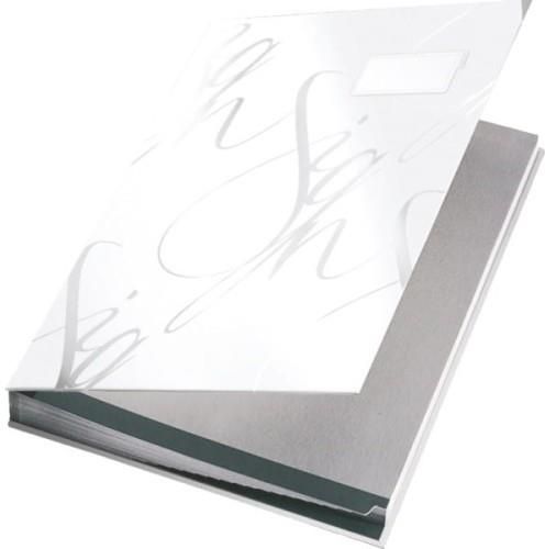 Książka na dokumenty do podpisu Leitz Wygodna i użyteczna książka przeznaczona do gromadzenia dokumentów wymagających podpisu, takich jak np. kontrakty, faktury czy inne dokumenty. Wyróżniające się wzornictwo okładki i świeże kolory zapewnią wnętrzom biurowym nowoczesny wygląd. Cechy produktu: * Eleganckie, modne wzornictwo i kolory okładki * Laminowana błyszcząca okładka zapewnia atrakcyjny wygląd i długotrwałą ochronę * 18 sztywnych przegródek z szorstką powierzchnią zabezpieczającą dokumenty przed wypadaniem * Okienko do opisu zawartości (np. nazwa działu lub nazwisko osoby) * Przekładki z otworami do podglądu zawartości * Produkt w 90% wykonany z materiałów w 100% pochodzących z odzysku * Przekładki wyposażone w dolne indeksy ułatwiające przekładanie stron Specyfikacja produktu: * Kod : 57450085 * Kolor : Szary * Wymiary : 240 x 25 x 340 mm * Waga : 1,02 Kg