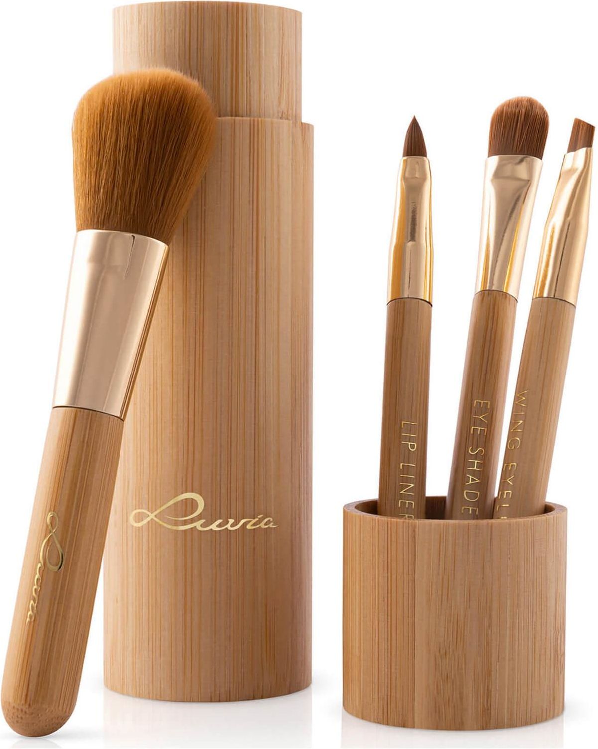 Luvia Cosmetics Bamboo Travel, 4 szt., Zestawy pędzli do makijażu dla kobiet, Profesjonalni wizażyści nie mogą obejść się przy aplikacji makijażu bez wysokiej jakości pędzli. Zainspiruj się ich sztuką i daj szansę pędzlom, zamiast nakładać makijaż palcami. Zestaw pędzli do makijażu Luvia Cosmetics …