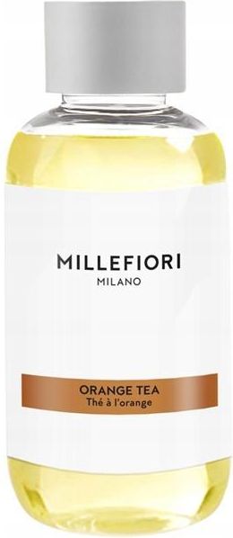 MM uzupełniacz 100ml ORANGE TEA OPIS PRODUKTU Owocowe nuty cytrusów z domieszką liści herbaty z Madagaskaru. OPIS ZAPACHU Uzupełniacz do dyfuzora FLOWER o pojemności 100ml dostępny jest w 4 bestsellerowych zapachach Millefiori Milano. Wybierz swój ulubiony i ciesz się zapachem! NUTY ZAPACHOWE Nuty górne: pomarańcza, cytryna, grejpfrut, bergamotka Nuty środkowe: mięta, liście fiołka kolendra, płatki róży Nuty dolne: piżmo, korzenie wetiwerii z Haiti Millefiori jest wiodącą marką w segmencie wysokiej jakości produktów zapachowych do wnętrz. W ofercie dostępnych jest 50 różnych zapachów i ponad 120 produktów. Siedziba firmy mieści się w Mediolanie. MILLEFIORI to przede wszystkim... ZAPACH. Misja Millefiori to : „Otulić i udekorować zapachem cały świat…” "Poruszać, wywoływać, wyrażać, identyfikować...Każdy zapach opowiada jakąś historię, wyraża nas samych i nadaje charakter pomieszczeniom w których przebywamy " Millefiori to: Wyrazistość i unikatowość zapachu. Różnorodność: ponad 50 zapachów i 120 produktów. Jakość: gwarancja odczuwania zapachu. Cena odpowiednia do jakości. Włoskie wzornictwo.