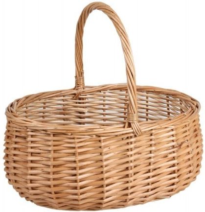OWALNY KOSZYK WIKLINOWY Z PAŁĄKIEM 34x27x15/31 cm Wiklinowe kosze sprawdzą się w kilku rolach. Możesz je wykorzystać na przykład jako kosze prezentowe. Obdarowana osoba otrzyma z jednej strony wspaniale zapakowane upominki, a z drugiej - praktyczny koszyk. Koszyki wiklinowe z pałąkiem możesz także postawić w widocznym miejscu w domu i potraktować jako ponadczasową dekorację. Wiklina jest przecież uniwersalna i zawsze modna! Jeśli natomiast włożysz do nich drobiazgi codziennego użytku, zyskasz też dodatkowe miejsce do przechowywania. Koszyki wiklinowe idealnie nadadzą się również jako koszyk na wielkanocną święconkę. Sprawdzi się także jako koszyk dla dzieci sypiących kwiaty na ślubach czy procesjach uroczystości Bożego Ciała. Specyfikacja Wymiary koszyka*: długość zewnętrzna: 34 cm szerokość zewnętrzna: 27 cm wysokość koszyka bez pałąka: 15 cm wysokość koszyka z pałąkiem: 31 cm Cechy produktu: wykonany z naturalnego materiału: wikliny rękodzieło przeznaczenie: koszyk na święconkę, koszyk dla dzieci sypiących kwiaty, koszyk na owoce, koszyk na drobiazgi, koszyk prezentowy, dekoracja i wiele innych * wymiary mogą się nieznacznie różnić od podanych ze względu na ręczne wykonanie z naturalnego materiału
