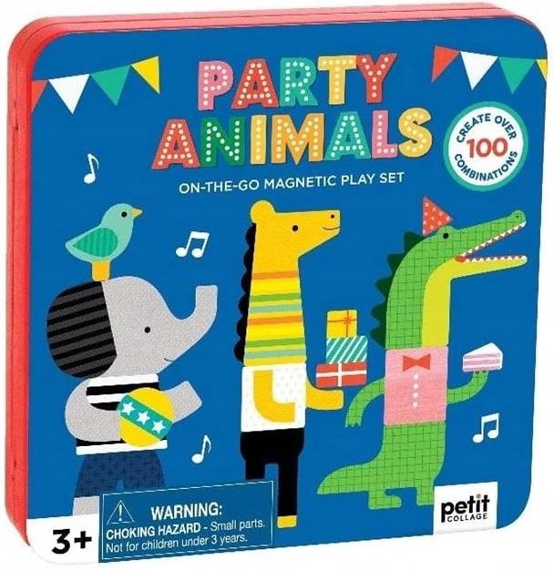 Magnetyczna układanka przyjęcie w pudełeczku Petit Collage Układanka kreatywna z magnetycznymi puzzlami Bajkowe kolory i wzory to znak rozpoznawczy marki Petit Collage. Piękna, magnetyczna układanka spodoba się każdemu dziecku. Zestaw składa się z 38 elementów, które można dowolnie łączyć tworząc piękne obrazki. Zabawka idealna – w domu i w podroży Magnetyczne puzzle zapakowane są w kolorowe pudełeczko więc z łatwością zabierzecie je ze sobą nawet w podróż. Wnętrze pudełeczka to również tło do układania Układanie magnetycznych puzzli to wspaniale spędzony czas który pobudzi wyobraźnię dziecka! Zabawa układanką ma wiele pozytywnych walorów rozwijających: zabawka pobudza kreatywność – możliwość łączenia elementów i tworzenia kolorowych postaci zabawka magnetyczna rozwija motorykę małą uczy łączenia poszczególnych elementów i tworzenia różnych obrazków uczy cierpliwości i daje mnóstwo radości Charakterystyka: zgodne z normami bezpieczeństwa dla dzieci od 3 lat opakowanie pełni funkcję tła do zabawy zabawka przyjazna środowisku Zestaw składa się z: 38 magnetycznych elementów, które umożliwiają tworzenie ciekawych obrazków 2 sceny (tła), które są jednocześnie opakowaniem Wymiary: szerokość:16cm wysokość:16cm głębokość: 2cm