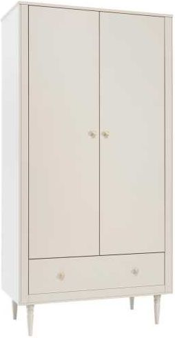 Kolekcja Petite szampańskaPetite to lunikalne połączenie estetyki skandynawskiej z akcentami charakterystycznymi dla stylu Art Déco. Konstrukcja kolekcji jest lekka wizualnie. Różnorodność dostępnych brył, ich pojemność, a także funkcjonalność pozwoli cieszyć się nimi przez wiele lat. Meble są solidne, wykonane z wysokiej jakości płyty MDF oraz litego drewna bukowego. Delikatne, włoskie uchwyty w odcieniu zgaszonego złota, doskonalne współgrają z szampańską kolorystyką mebli z tej kolekcji. Petite idealnie łączy w sobie klasykę z nowoczesnością, nadając wnętrzu niepowtarzalnego charakteru. Główne zalety szafy Pojemna szafa dwudrzwiowa z kolekcji Petite z systemem cichego zamykania wysokiej jakości ma wewnątrz pionową przegrodę. Istnieją różne możliwości aranżacji wnętrza szafy. W skład szafy wchodzi standardowo aż cztery półki, dwa drążki na ubrania oraz pojemna szuflada. Mebel pasuje zarówno do pokoiku chłopca, jak i dziewczynki. Materiały Mebel wykonany jest z laminowanej płyty meblowej, płyty MDF - ramka oraz nóżki z litego drewna bukowego. Dodatkowo został pomalowany ekologicznymi farbami wodnymi, dzięki czemu zapewniono mu prawidłowy proces oddychania oraz wyeliminowano czynnik mogący powodować u dzieci alergie. Jak dbać o mebel? Przecieraj go wilgotną szmatką z łagodnym środkiem myjącym. Uwaga Do mebla dołączona jest szczegółowa instrukcja oraz wyposażenie niezbędne do jego montażu.