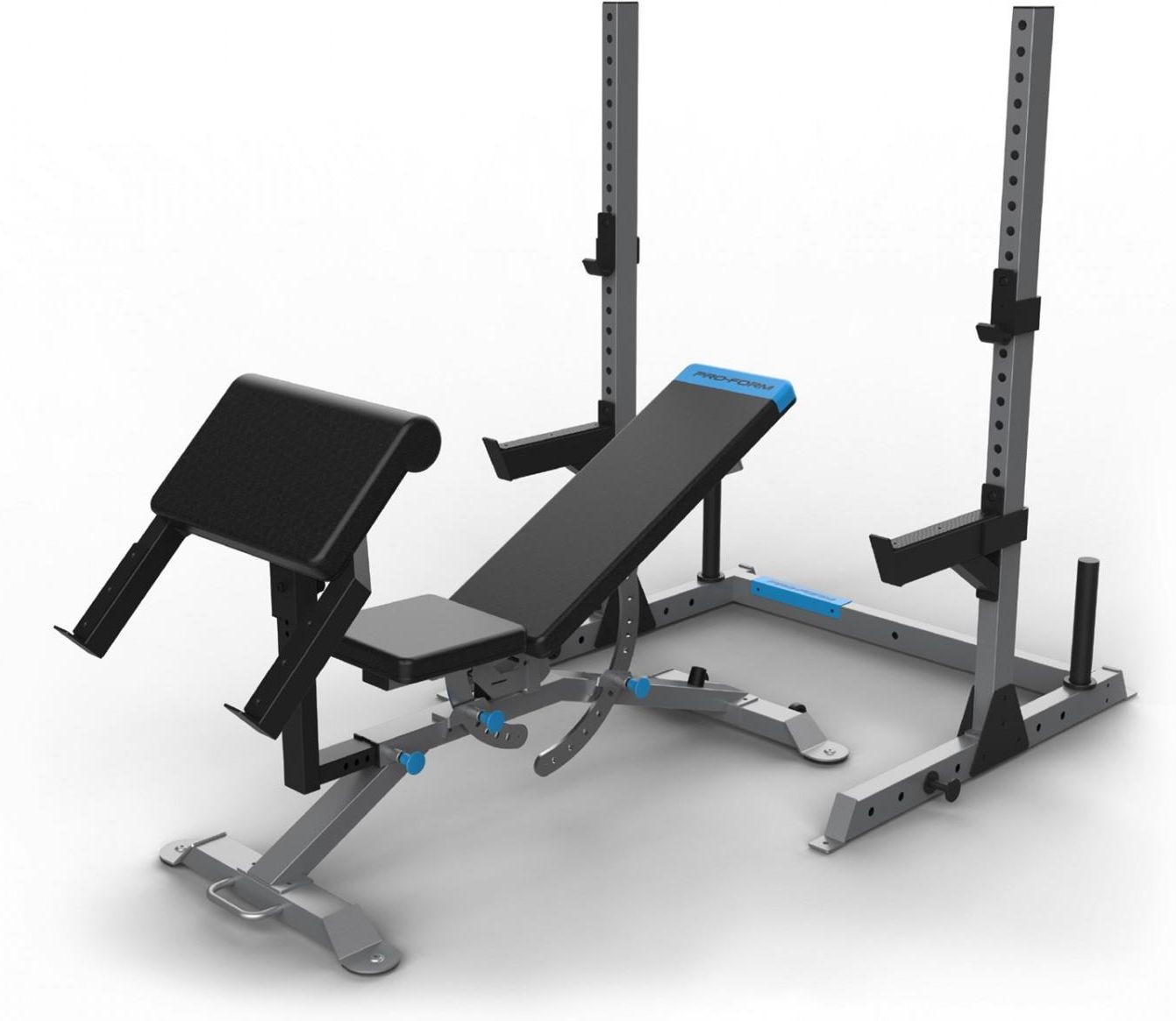 Proform ławka olimpijska Carbon Strength Właściwości: Ławka do ćwiczeń to podstawowy element wyposażenia domowej siłowni. Mnogość ćwiczeń jakie można wykonać przy pomocy ławki treningowej wpływa na popularność tego produktu. Możesz wybrać ławkę z przeznaczeniem do treningu siłowego z obciążeniem lub do typowego kardio. Ławka sama w sobie daje nam dużo możliwości, a w zestawie z akcesoriami takimi jak modlitewnik, uchwyt na nogi czy miejsce na hantle i sztangę pozwala zrobić pełny trening jak na klasycznej siłowni we własnym domu, a za razem utrzymać porządek. Ławka olimpijska Carbon Strength marki Proform pomoże Ci wykonać nawet najbardziej zaawansowany trening siłowy w Twoim własnym domu. Oparcie i siedzenie są regulowane, możesz ustawić je łącznie w 66 konfiguracjach. Dzięki temu komfortowo i efektywnie możesz pracować nad wybranymi partiami mięśni. Wystarczy ławka, sztanga i hantle, abyś mógł zwiększyć swoją siłę, wytrzymałość i wyrzeźbić sylwetkę. Uchwyty na sztangę możesz ustawić na dogodnej dla siebie wysokości, w zależności od Twojego wzrostu i ćwiczeń, jakie chcesz wykonać. Umożliwiają to haki asekuracyjne, które możesz swobodnie regulować. Regulacja pozwala Ci dopasować wysokość sztangi oraz jej odległość od ławki sprawiając, że staje się jeszcze bardziej uniwersalna. Dodatkowo stojak wyposażony jest w dwa uchwyty na obciążenia, które pozwolą Ci utrzymać w domowej siłowni ład i porządek. Na stojaku znajdują się także uchwyty na gumy treningowe. W zestawie z ławką znajduje się także regulowany modlitewnik z uchwytem na sztangę, który możesz w razie potrzeby zdemontować. Zarówno ławka jak i modlitewnik pokryte są pianką i estetycznym nowocześnie wyglądającym materiałem. Niebieskie wstawki z logo Proform sprawiają, że produkt jest jeszcze bardziej atrakcyjny. Pamiętaj, że trening należy poprzedzić rozgrzewką, aby zmniejszyć ryzyko odniesienia kontuzji. W przypadku ćwiczeń ze sztangą, dla Twojego bezpieczeństwa ważne jest, aby ktoś był gotowy pomóc Ci dokończyć w podniesieniu ostatniego powtórzenia. DANE TECHNICZNE: Wymiary: 226 x 171 x 164 cm (dł. x szer. x wys.) Regulacja siedziska: 6 wariantów (0° do 40°) Regulacja oparcia: 11 wariantów (-20° do 75°) Odległość między uchwytami na sztangę: 109,3 cm Długość uchwytów na sztangę: 12,2 cm Maksymalna wysokość uchwytów na sztangę (regulacja): 149 cm Średnica uchwytów na obciążenia: 4,8 cm Siedzisko i oparcie obszyte winylem Maksymalna waga użytkownika: 136 kg Maksymalne obciążenie modlitewnika: 45 kg Maksymalne obciążenie stojaka na sztangę: 141 kg Przeznaczenie: użytek domowy Gwarancja: 2 lata