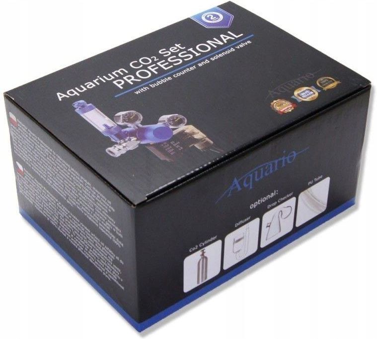 Aquario BLUE TWIN Standard - reduktor dwuwylotowy Aquario Reduktor posiada wbudowane: 2 x licznik bąbelków, 2 x zaworek precyzyjny, 2 x zaworek przeciwzwrotny, manometr zegarowy. Droga gazu z butli przez reduktor BLUE TWIN przebiega przez kilka urządzeń: 1. Zegar Zegar wskazuje ciśnienie gazy wewnątrz butli, dzięki temu łatwo przewidzieć zużycie gazu w butli. 2.Reduktor Aquario BLUE Reduktor wykonano z stopu metali odpowiadającego najwyższym wymaganiom technicznym, jednocześnie gwarantując dużą wytrzymałość i niezawodność jego elementów. Dzięki temu urządzenie zapewnia 100% szczelność oraz wysoką precyzję dawkowania gazu. Pomiędzy reduktorem a zaworkami precyzyjnymi gaz zostaje rozdzielony na dwie drogi wyjścia. 3. Zaworki precyzyjne x 2 Po jednym na każdej z dróg. Dzięki takiemu rozwiązaniu można regulować przepływ gazu do wybranego zbiornika. Zaworki są dokładne w swojej pracy oraz potrafią całkowicie i szczelnie zamknąć drogę gazu. 4. Liczniki bąbelków z zaworkami zwrotnymi x 2 Praktycznie niezniszczalny licznik bąbelków który został wyposażony w złączkę zaciskową, pasujące na wężyki silikonowe jak również ciśnieniowe PU.W pełni rozbieralny co ułatwia cykliczne napełnienia wodą. Licznik bąbelków posiada wbudowany zaworek przeciwzwrotny co uniemożliwia cofnięcie się gazu czy wody. Wszystkie elementy są zintegrowane z reduktorem co znacznie ułatwia jego użytkowanie. W pudełku znajdziemy również poręczny klucz za pomocą którego bez problemu dokręcimy reduktor do butli CO2. Reduktor Aquario BLUE TWIN Standard To reduktor rozdzielający precyzyjnie gaz CO2 na dwa zbiorniki akwarystyczne. To najwyższej jakości produkt, stworzony od początku do końca specjalnie na potrzeby akwarystyki. Cechuje go niezwykła precyzja dawkowania CO2 oraz konstrukcja wykorzystująca sprawdzone w praktyce rozwiązania.