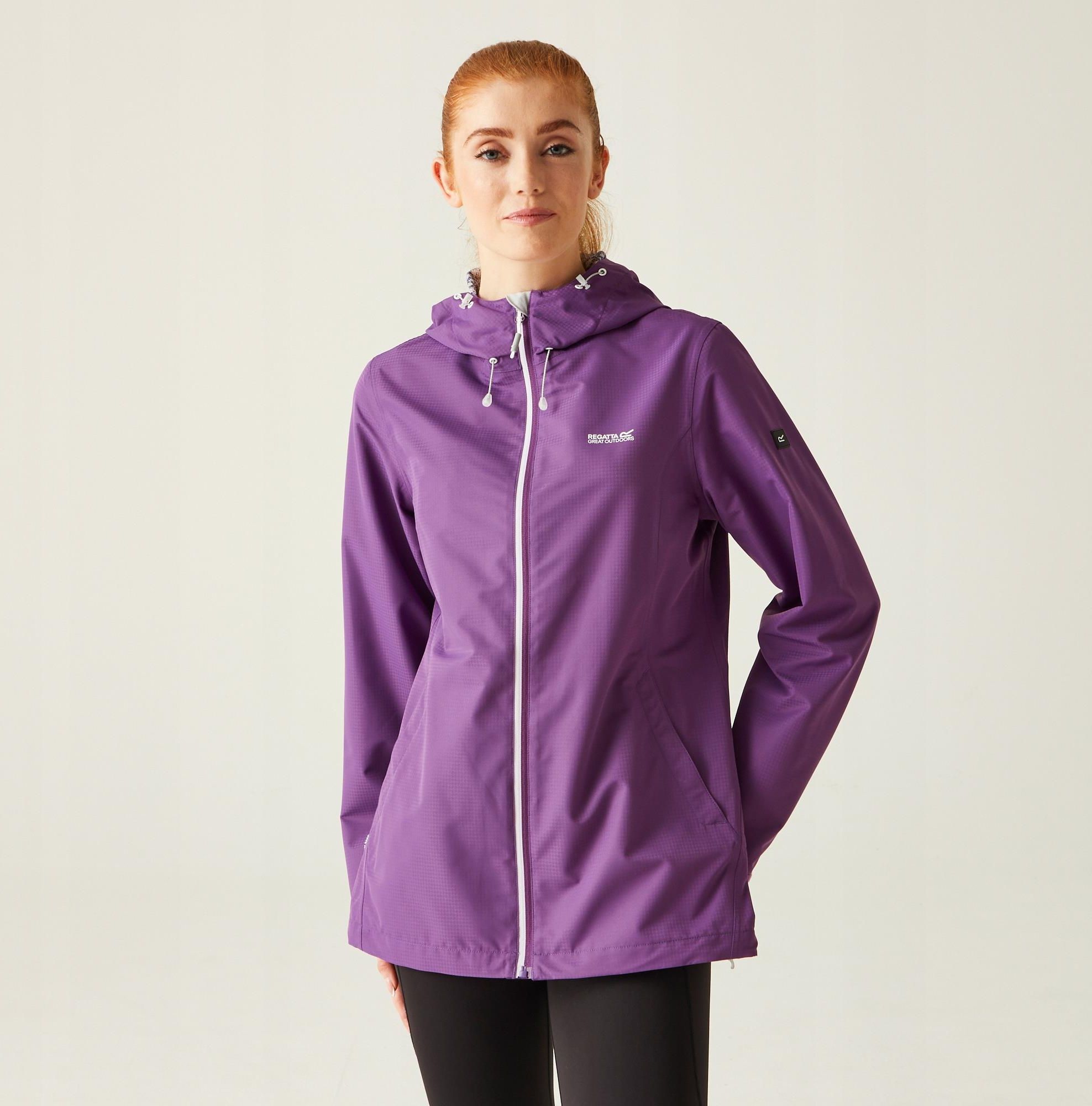 Regatta - Damska kurtka przeciwdeszczowa Hamara III Ochrona w trakcie przygód na zewnątrz i niska waga. Kurtka Hamara łączy w sobie minimalistyczny design i sprawdzone technologie, gwarantując komfort i ochronę przed złą pogodą.Lekko teksturowana tkanina poliamidowa z membraną Isotex 5.000 z wodoodporną powłoką DWR (Durable Water Repellent) i podklejonymi szwami chroni przed wodą i pozwala skórze oddychać. Dwustopniowa regulacja kaptura z daszkiem gwarantuje optymalną widoczność, a wewnętrzna osłonka i ochrona brody nie pozwalają wodzie wedrzeć się do środka. Wyposażona w podszewkę z miękkiej siateczki i dwie zamykane na suwak kieszenie. Technologia Isotex Stretch - Membrana zapewniająca wodoodporność, oddychalność i wiatroszczelność, rozciągliwa Membrana Isotex 5.000 Wodoodporność: 5.000mm Oddychalność: 5.000g/m²/24 hours Materiał 100% Poliester