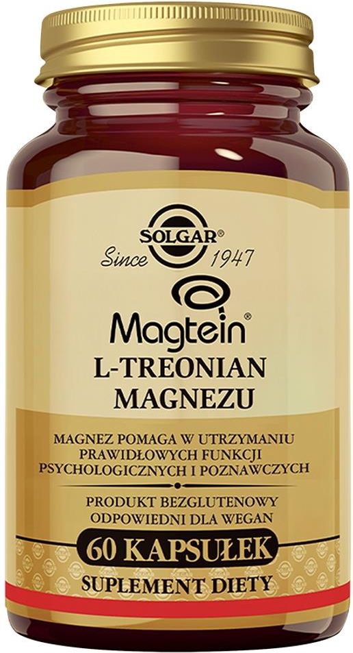 Solgar Magtein® – L-treonian magnezu dla wsparcia funkcji psychologicznych i układu nerwowegoMasz intensywny dzień i chcesz zadbać o koncentrację, równowagę oraz energię? Solgar Magtein® to suplement diety z Magtein® (L-treonian magnezu) – unikalną, przebadaną formą magnezu. Magnez pomaga w utrzymaniu prawidłowych funkcji psychologicznych i układu nerwowego oraz przyczynia się do zmniejszenia uczucia zmęczenia i znużenia.Formułę uzupełniono o ekstrakty roślinne: z borówki, truskawki i szpinaku.