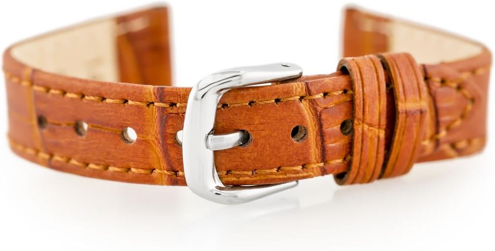 Pasek skórzany do zegarka W41 - brązowy - 12mm OPIS: Pasek ze skóry naturalnej w kolorze brązowym z brązowymi przeszyciami. Klamerka metalowa w kolorze srebrnym. WYMIARY szerokość przy mocowaniu: 12mm szerokość przy klamerce: 10mm długość części z klamerką: 77mm długość części z dziurkami: 105mm liczba dziurek: 7 maksymalna / minimalna długość około: 15 cm / 11 cm KOLOR PASKA/KOPERTY: Brązowy SZEROKOŚĆ: 12mm