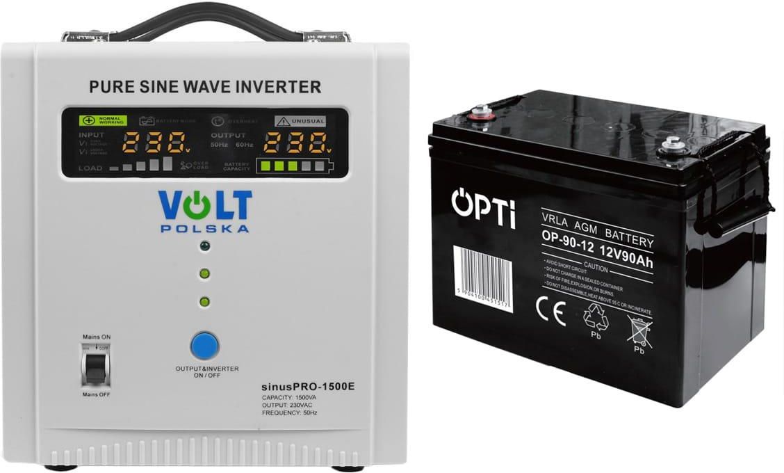 Volt Polska Sinus Pro 1500E 1500Va/1000W + Akumulator Opti Vrla Agm 12V 90Ah (3Sp091512E+6Akuv090Ag) Bytom