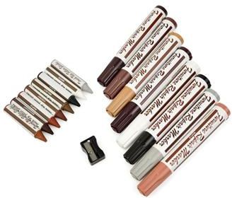 Zestaw do naprawy mebli paneli markery 17el GekoZestaw do naprawy uszkodzeń powstałych w panelach, meblach, drzwiach oraz innych materiałach drewnopodobnych itp.Zestaw pozwala w estetyczny i tani sposób zamaskować pęknięcia, wyszczerbienia itp. W skład zestawu wchodzi 8 kolorów pisaków oraz 8 kredek woskowych w tych samych kolorach. Naprawa uszkodzonej powierzchni odbywa się dwuetapowo, w pierwszej kolejności należy wypełnić ubytek półtwardą kredką woskową w odpowiednio dobrany kolorze, a następnie pokrycie tego miejsca olejowymi pisakami tworząc strukturę przypominającą drewno.Charakterystyka produktu: doskonale sprawdzi się podczas naprawy/maskowania uszkodzonych powierzchni z materiałów drewnianych lub drewnopodobnych zestaw zawiera 8 kredek woskowych oraz 8 pisaków olejowych oraz temperówka pisaki tworzą powłokę odporną na zmywanie pozwala w łatwy i tani sposób dokonać naprawy uszkodzonych powierzchniSpecyfikacja techniczna: Ilość elementów zestawu: 17 Ilość kredek woskowych: 8 Ilość pisaków olejowych: 8 Kolory pisaków oraz wosku: czarny, szary, biały, mahoń, klon, dąb, wiśnia, orzech włoski