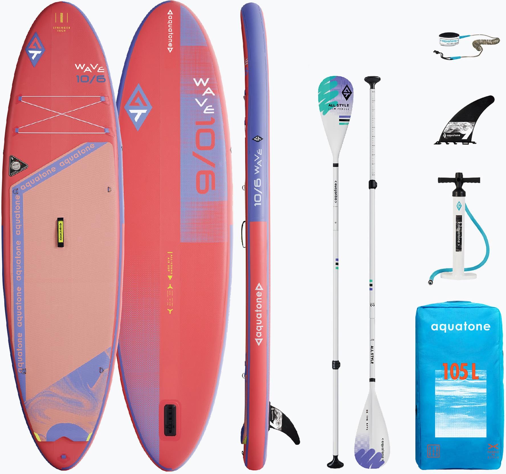 DESKA SUP POMPOWANA WAVE 10.6 ALL-ROUND AQUATONE ZESTAW 2024 Gama desek WAVE All-round to ulubiony wybór użytkowników na każdym poziomie. Supy z serii Wave i Wave Plus posiadają najbardziej popularny kształt, są wyjątkowo szerokie i grube. W nowym sezonie 2024 Wave 10’6 został całkowicie przeprojektowany i wzbogacony świeżymi kolorami i konstrukcją. Klasyczny, wszechstronny nadmuchiwany SUP, który wyznacza standardy dzięki oszałamiającej wydajności i pięknemu designowi. WAVE 10'6" to najbardziej standardowy SUP w gamie Wave i Wave Plus. Przeznaczony dla użytkowników początkujących i średnio zaawansowanych, szukających SUPa do rekreacyjnego pływania po spokojnych wodach. PRZEZNACZENIE DESKI WAVE 10'6 POCZĄTKUJĄCY LUB ŚREDNIO ZAAWANSOWANI UŻYTKOWNICY UŻYTKOWNICY ŚREDNIEJ WYSOKOŚCI UŻYTKOWNICY LEKKIEJ I ŚREDNIEJ WAGI REKREACYJNE PŁYWANIE PŁASKA WODA, BLISKO BRZEGU I MAŁE FALE KOMPAKTOWY ROZMIAR Najbardziej popularny rozmiar SUP z kolekcji Wave i Wave Plus. Seria Wave to najbardziej pożądane modele dla wszystkich warunków wodnych. Deski zapewniają zwrotność i niesamowity komfort podczas wiosłowania. TECHNOLOGIA STRINGERA Zastosowanie stringerów o szerokości 13 cm na całej długości deski i na burtach wzmacnia sztywność i bezpieczeństwo, nawet przy falach i silnym wietrze. NAJWYŻSZEJ JAKOŚCI MATERIAŁ I TECHNOLOGIA SPAWANIA CIEPLNEGO Materiał PREMIUM DROP-STITCH z technologią spawania na ciepło taśm brzegowych tworzy wyjątkowo solidną i niezwykle lekką deskę w bezkonkurencyjnej cenie. W połączeniu z technologią stringer otrzymujemy bardzo sztywną deskę, która jest gotowa na każdą podróż. MIĘKKA PODKŁADKA EVA Unikalny nadruk graficzny z serii "Fale". Pokład pokryty pianką EVA 4 mm o strukturze diamentu zwiększa komfort pływania i poprawia przyczepność. PRZEDNIE LINKI BUNGEE Zintegrowana siatka na pokładzie przednim do mocowania podstawowego sprzętu takiego jak butelka na wodę lub mały bagaż. DANE TECHNICZNE Materiał: PVC+DROPSTITCH Producent: Aquatone Długość: 320 cm Szerokość: 81 cm Waga: 9 kg Obciążenie max.: 143 kg Wysokość: 15 cm Objętość: 300 L Ciśnienie max: 15 PSI SPECYFIKACJA Zintegrowana siatka na pokładzie przednim do mocowania podstawowego sprzętu takiego jak butelka na wodę lub mały bagaż. Zastosowanie wzmacniającej poprzeczki PCV (stringer) o szerokości 13cm na całej długości deski i na burtach. Technologia stringera znacznie zwiększa sztywność deski w porównaniu do zwykłych, jednowarstwowych supów. Wraz ze zgrzewaniem zewnętrznych taśm brzegowych - ta nowa konstrukcja gwarantuje wysoką sztywność, trwałość i zwrotność. 3. Zawór wysokiego ciśnienia- zapewnia maksymalną sztywność i bezpieczeństwo. MAKSYMALNE CIŚNIENIE POWIETRZA TEJ DESKI WYNOSI 15PSI. WSZELKIE WYŻSZE CIŚNIENIE MOŻE SPOWODOWAĆ NADMIERNE NAPOMPOWANIE I USZKODZENIE DESKI. 4.Wysokość deski 15cm- zapewnia wystarczającą pojemność, doskonałą stabilność i bardzo wygodne użytkowanie. 5. Zastosowanie na pokładzie d-ringów do mocowania siedzenia kajakowego (siedzenie nie jest dołączone do zestawu). 6. Pokład pokryty pianką EVA 4mm o strukturze diamentu- zwiększa komfort pływania i poprawia przyczepność. Centralny uchwyt wykonany jest z miękkiego neoprenu z gumową podkładką, która zapewnia wytrzymałość i wygodne przenoszenie. 7. Tylny, zintegrowany z pokładem kickpad pomocny w wykonywaniu szybkich skrętów i zwrotów. 8. 9’ center fin- zdejmowany, wykonany z nylonu. W ZESTAWIE Z DESKĄ smycz bezpieczeństwa (leash) o długości 2,44 m fin 9'0 center fin pompka Aquatone Double Action: podwójne działanie maksymalne ciśnienie 27 psi/1,9 bara pojemność 2000cm3 plecak na SUPa wymiary: 45 x 28.5 x 90.5 cm waga: 0.94 g pojemność: 105l wiosło do SUP Allstyle 2.0 Aquatone 165 - 210 cm trwałe nylonowe pióro drążek aluminiowy 3-częściowe