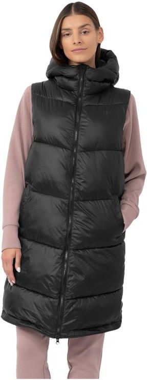 Specyfikacja: Materiał główny: Poliester 100% Wypełnienie: Poliester 100% Wypełnienie: puch synetyczny Pikowana konstrukcja Dwie kieszenie boczne Hydrofobowa impregnacja Dwukierunkowy zamek YKK Zintegrowany kaptur Pikowana kamizelka z kapturem marki 4F. Lekka a do tego niezwykle ciepła. Idealnie sprawdzi się w porze przejściowej, wiosną czy jesienią. Przedłużany krój sprawi, że bezrękawnik doskonale skomponuje się z grubszą bluzą czy cieńką kurtką. Materiał z kórego jest wykonana kamizelka, jest trwały a do tego impregnowany, dzięki czemu nie przepuszcza wilgoci. Obszerny kaptur uchroni Cię w wietrzne czy deszczowe dni. W kieszeniach bocznych przechowasz osobiste drobiazgi lub ogrzejesz dłonie.