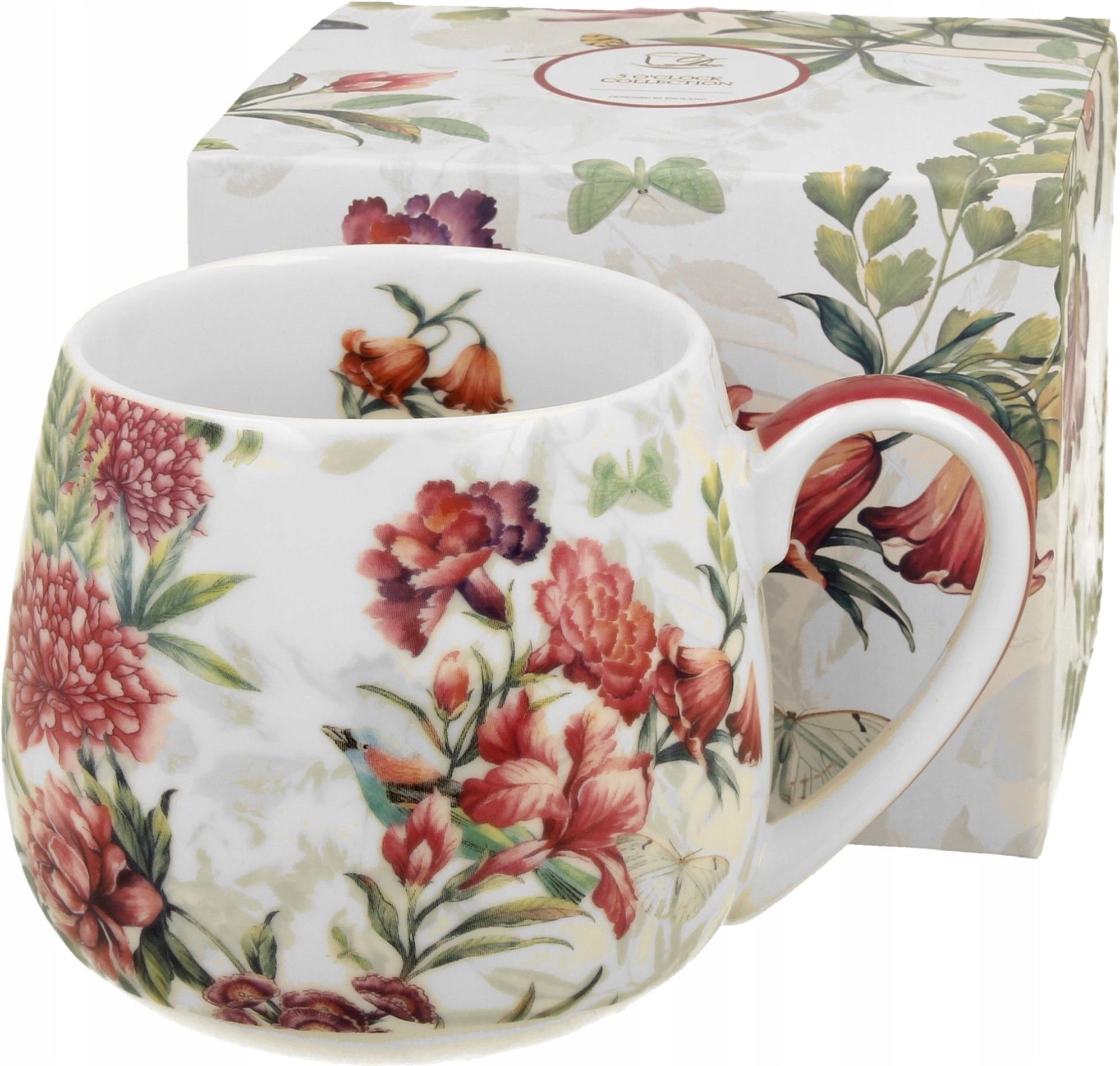 Duo Kubek Baryłka 430ml Lucia Kubki to nieodłączny element naszej codzienności, odgrywający kluczową rolę w serwowaniu ulubionych napojów. Wybór odpowiedniego kubka wpływa nie tylko na estetykę, ale także na komfort picia. Duo Kubek Baryłka 430ml Lucia to przykład eleganckiego i funkcjonalnego naczynia, które z pewnością umili chwile spędzone przy aromatycznej kawie czy herbacie. Jego unikalny design oraz wysoka jakość wykonania sprawiają, że może stać się nie tylko praktycznym akcesorium, ale także ozdobą stołu. Opis produktu Ten porcelanowy kubek ma pojemność 430 ml, co czyni go idealnym do serwowania różnego rodzaju napojów. Został wykonany z porcelany New Bone China, znanej ze swojej delikatności oraz wytrzymałości. Kubek zdobiony jest pięknym wzorem z różowymi kwiatami, ptaszkiem i motylami w pastelowych barwach, co nadaje mu subtelności i elegancji. Taki design sprawia, że naczynie harmonijnie wpisuje się w różne aranżacje wnętrz. Cechy i zalety Przyjrzyjmy się teraz kluczowym cechom i zaletom, które wyróżniają Duo Kubek Baryłka 430ml Lucia: Materiał: wykonany z porcelany New Bone China, co zapewnia mu dużą wytrzymałość przy zachowaniu delikatności. Pojemność: 430 ml, idealna do serwowania różnych napojów. Możliwość mycia w zmywarce: ułatwia codzienną pielęgnację, co jest istotne dla osób prowadzących szybki tryb życia. Wzór: ozdobiony motywem różowych kwiatów, co dodaje mu elegancji i wyjątkowego charakteru. Kolor: czysta biel porcelany, która komponuje się z różnymi stylami zastawy stołowej. Wymiary: średnica 8 cm, wysokość 9 cm, szerokość z uchem 12,5 cm, co zapewnia wygodę podczas użytkowania. Odporny na wysokie temperatury: idealny do parzenia herbaty czy serwowania gorącej kawy. Dodatkowe informacje Duo Kubek Baryłka 430ml Lucia to znakomita propozycja na prezent. Dołączone do zestawu dekoracyjne pudełko stanowi atrakcyjną oprawę, co eliminuje potrzebę dodatkowego pakowania. Połączenie estetycznego kubka z paczką ulubionej herbaty lub kawy może być miłym upominkiem dla bliskiej osoby. Taki zestaw z pewnością wzbudzi radość i sprawi, że chwile relaksu przy ulubionym napoju staną się jeszcze przyjemniejsze. Wybierając ten produkt, można być pewnym, że stanie się on zarówno funkcjonalnym akcesorium, jak i eleganckim elementem w każdej kuchni. Jego wysoka jakość wykonania sprawia, że będzie służył przez długie lata, zachowując swoje walory estetyczne i użytkowe.