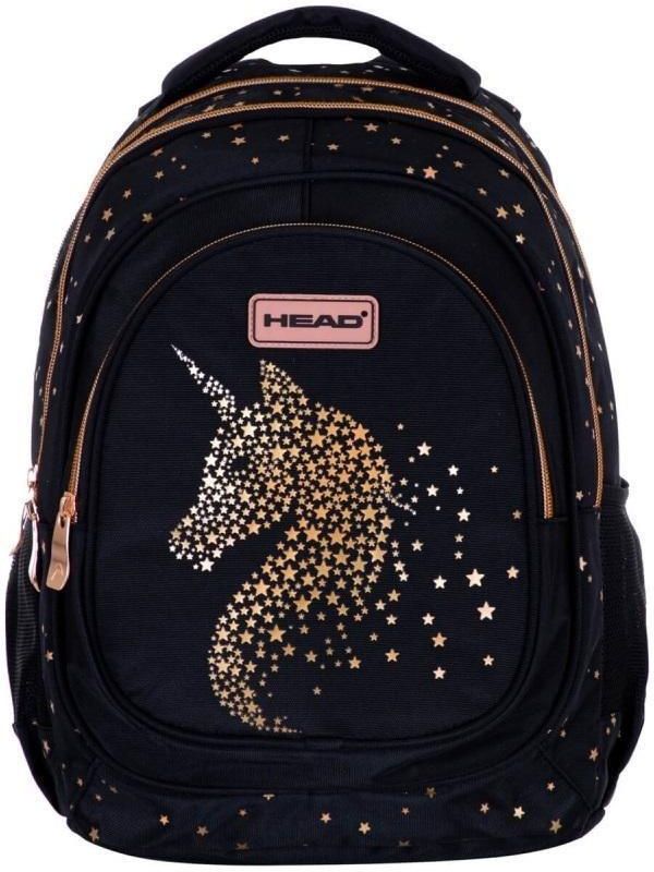 Plecak szkolny Head Golden Effect Classy Gold Plecak wyposażony jest w trzy pojemne komory pełne praktycznych schowków. Cechy plecaka: 3 komory, 2 kieszenie zewnętrzne - siatki, przegroda na laptop, w środku jednej komory z przodu są przegródki na przybory, telefon, karabińczyk na klucze, komfort i bezpieczeństwo, profilowane, ergonomiczne plecy, miękkie szelki z regulacją długości, materiał wodoodporny, elementy odbla..