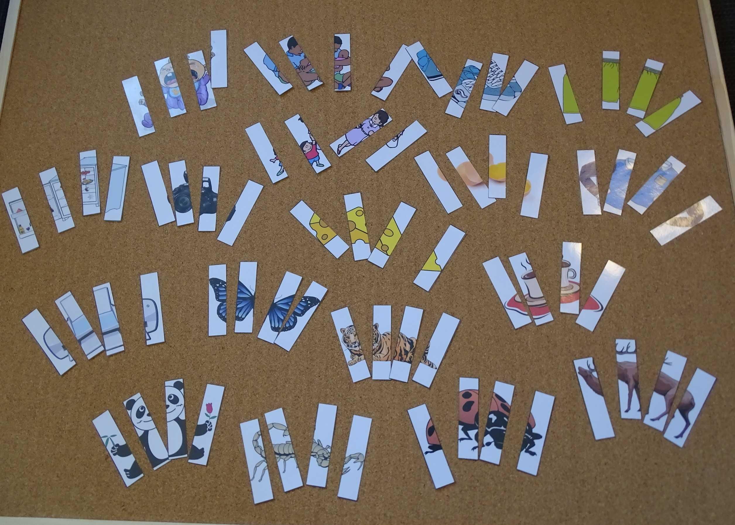 Zestaw składa się z 18 szt. zalaminowanych dużych obrazków pociętych na 4- elementowe części, przygotowanych pod kątem graficznym w różnych kategoriach: rodzina, żywność, sprzęt domowy, ubiór, zwierzęta, owady. Dzięki temu możemy nie tylko układać obrazki w całość,ale również rozwijać mowę, uczyć segregowania. Zawartość zestawu:- 18szt. zalaminowanych obrazków ( 72 szt. zalaminowanych części)