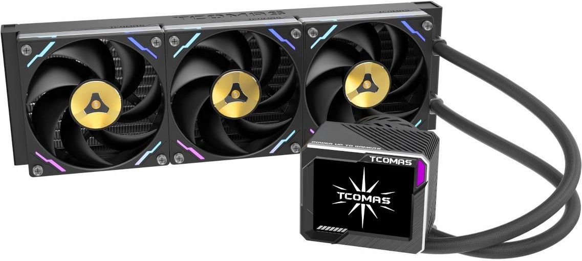 TCOMAS LG700 PRO 360 Czarne LG700P2BK36DEU Stworzony z myślą o najbardziej wymagających użytkownikach, TCOMAS LG700 PRO 360 to chłodzenie cieczą klasy premium, które łączy zaawansowaną technologię z perfekcyjnym wykonaniem. Zestaw typu All-in-One wyposażono w trzy 120-milimetrowe wentylatory, masywną aluminiową chłodnicę oraz pełnoprawny ekran IPS o przekątnej 3,5 cala, umożliwiający personalizację wyglądu i monitorowanie parametrów pracy. Całość zaprojektowano z troską o kompatybilność i estetykę, oferując beznarzędziowy montaż i minimalistyczne prowadzenie kabli. Ekran IPS i personalizacja W centralnej części pompy umieszczono ekran IPS 3,5” – nie tylko wyświetlający dane o temperaturze czy obrotach, ale też w pełni konfigurowalny wizualnie. Obsługuje animacje, filmy i własne grafiki, a jego intuicyjna obsługa dostępna jest także w języku polskim. Dzięki aplikacji TCOMAS T’owei możesz z łatwością zsynchronizować podświetlenie ARGB chłodzenia z resztą systemu i nadać swojemu zestawowi niepowtarzalny charakter. Specyfikacja Rodzaj chłodzenia: Wodne Podświetlenie: Tak Rodzaj podświetlenia: ARGB Liczba wentylatorów: 3 szt. Średnica wentylatora: 120 mm Obroty wentylatora: 650-3200 RPM Wysokość (radiator): 29,2 mm Szerokość (radiator): 394 mm Głębokość (radiator): 119,2 mm Wysokość (blok wodny): 86,4 mm Szerokość (blok wodny): 92 mm Głębokość (blok wodny): 91 mm Materiał (węże): Guma w oplocie Długość (węże): 400 mm Kompatybilność (Intel): LGA 1700 / 1851 Kompatybilność (AMD): AM5 / AM4 Kolor: Czarny Dodatkowe informacje: Pompa Martech X6M-P / Wbudowany ekran LCD 3,5" / Zdejmowalna, magnetycznie montowana obudowa bloku pompy Dołączone akcesoria: Przewód ARGB - 1 szt. / Splitter PWM - 1 szt. / Przewód zasilający - 1 szt. / Zestaw montażowy - 1 szt.