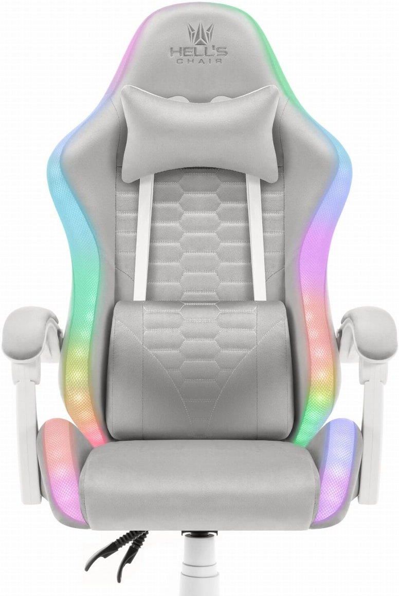 Hells Chair Hc-1000 Grey Szary Biały Tkanina Led RGB Cedynia
