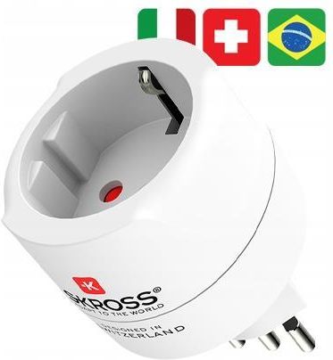 SKROSS Adapter Przejściówka z POLSKI do Włoch Szwajcarii Brazylii 3 in 1 3 adaptery w 1 Dzięki opatentowanemu systemowi z tym adapterem podłączysz w bezpieczny sposób urządzenia w: Włochy typ L Szwajcaria typ I Brazylia typ N oraz Liechtensteinie, Chile, Erytrea i Rwanda Moc urządzeń 2500W Wymienny bezpiecznik Najwyższa jakość i bezpieczeństwo Jest to najbezpieczniejszy sposób podłączenia Twoich cennych urządzeń na świecie. Zaprojektowany w Szwajcarii Odpowiedni do polskich wtyczek z uziemieniem i bez uziemienia (2- i 3-biegunowymi) Odpowiedni do gniazdek z uziemieniem w standardzie – szwajcarskim, włoskim i brazylijskim Napięcie wejściowe: 100 V – 250 V Max. obciążenie: 10 A Moc znamionowa: np. 100 V – 1000 W / 250 V – 2500 W Wymienny bezpiecznik Certyfikat TUV Adapter nie konwertuje napięcia Lista krajów w których możesz używać ten adapter Szwajcaria Włochy Brazylia Chile Erytrea Liechtenstein Rwanda Waga Adapter: 68g Adapter + opakowanie: 89 g Wymiary Adapter: szer. 56 mm wys. 80 mm gł. 54 mm Adapter + opakowanie: szer. 105 mm wys. 175 mm gł. 58 mm Dzięki opatentowanemu rozwiązaniu przesuwanego pina z uziemieniem ten adapter może być używany nie tylko we Włoszech, ale również w Szwajcarii i Brazylii. Kupując go otrzymujesz 3 adaptery w jednym Włochy typ L Szwajcaria typ I Brazylia typ N O NAS Jesteśmy wyłącznym przedstawicielem szwajcarskiej marki SKROSS® - innowacyjnych akcesoriów dla nowoczesnych podróżnych. OFERTA SKROSS® Adaptery UNIWERSALNE. Seria adapterów uniwersalnych działających w 220 krajach. Opatentowane rozwiązania, najwyższy stopień bezpieczeństwa. Jedyne takie adaptery na świecie. ADAPTERY POJEDYNCZE. Adaptery do konkretnych krajów. Nasza oferta to największy wybór na rynku. POWER BANKI. Seria najwyższej jakości power banków RELOAD to długia żywotność baterii, smukłe obudowy i najwyższa jakość wykonania. ŁADOWARKI USB. Ładowarki dla podróżnych, ładowarki do samochodu, ładowarki z dwoma i czterema portami USB. KABLE. Najpopularniejsze rodzaje kabli Micro USB, Lightning, Type C. Akcesoria turystyczne. Poduszki, pasy do bagażu, lokalizatory itd SKROSS® ENERGIA BEZ GRANIC Firma SKROSS® wynalazła i opatentowała w 2002 roku pierwszy na świecie adapter all-in-one z systemem suwaków danego kraju. Produkty firmy SKROSS® od wielu lat cieszą się ogromną popularnością pośród osób, które dużo czasu spędzają w podróży. Wszystko dzięki funkcjonalności i wysokiej jakości jaką się wyróżniają, służąc niezawodnie wszystkim obieżyświatom w najodleglejszych zakątkach świata. SKROSS® to numer 1 na świecie w segmencie travel power. Produkty SKROSS® są dostępne w ponad 100 krajach.