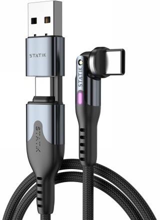 Statik PowerPivot Pro kabel USB-C-USB-C 3m,nylonowy oplot, obrotowa wtyczka CURV Group, LLC Statik PowerPivot Pro – Rewolucyjny Kabel Ładowania i Transferu Danych Obrotowe Złącze Bez Zakłóceń PowerPivot™ został zaprojektowany z myślą o wygodzie użytkowania. Dzięki obrotowemu złączu możesz korzystać ze swojego telefonu w trybie poziomym lub pionowym bez żadnych przeszkód. Obracające się złącze zapewnia nieprzerwane działanie, niezależnie od pozycji urządzenia. Konstrukcja Odporna na Strzępienie Wytrzymałość to kluczowy element PowerPivot Pro. Kabel wykonany z nylonowego oplotu klasy wojskowej gwarantuje długotrwałe użytkowanie bez obaw o uszkodzenia. Wzmocnione gumowe przejście kabla zapobiega strzępieniu się końcówek, co znacząco przedłuża jego żywotność. Szybki Transfer Danych PowerPivot Pro to nie tylko ładowanie, ale także szybki transfer danych. Przenoś zdjęcia, filmy, muzykę i inne pliki z dużą prędkością i bez obaw. Wbudowane funkcje bezpieczeństwa chronią baterię, urządzenia i pliki przed uszkodzeniem, zapewniając bezpieczne ładowanie i przesyłanie danych. Wskaźnik Świetlny Ładowania Koniec z ciągłym sprawdzaniem stanu baterii. Dioda LED na końcu kabla PowerPivot Pro informuje o ładowaniu urządzenia, dzięki czemu zawsze wiesz, kiedy Twój telefon jest podłączony do źródła zasilania. Ekskluzywny Projekt Statik PowerPivot Pro to produkt wyjątkowy pod każdym względem. Ekskluzywny design Statik® odróżnia nasze kable od innych dostępnych na rynku. Jeśli szukasz autentycznego i niezawodnego kabla ładującego, PowerPivot Pro jest dostępny tylko u nas. Kompatybilność PowerPivot Pro jest kompatybilny ze wszystkimi urządzeniami posiadającymi złącze USB-C, co czyni go uniwersalnym rozwiązaniem dla użytkowników różnych urządzeń. Kup teraz Statik PowerPivot Pro i doświadcz wyjątkowej jakości oraz niezawodności kabli ładujących i transferu danych! Najważniejsze cechy Kabel USB-C – USB-C z funkcją ładowania i przesyłania danych Obrotowe złącze pozwalające wygodnie korzystać z urządzeń podczas ładowania Szybkie ładowanie BlitzCharge z mocą do 60 W Przesyłanie danych z prędkością do 480 Mb/s Nylonowy splot klasy wojskowej odporny na przetarcia Wbudowana kontrolka ładowaniaSpecyfikacja Kolor: czarny Interfejs wejściowy: USB-C Interfejs wyjściowy: USB-C Moc wyjściowa: maks. 60 W (20V/5A) Transfer danych: 480 Mb/s (standard USB 2.0) Funkcje: ładowanie i transfer danych W zestawie adapter USB-A i silikonowy organizer na kable Cechy dodatkowe: długość 3m, obrotowa końcówka, oplot, złącza USB-A/C na USB-C