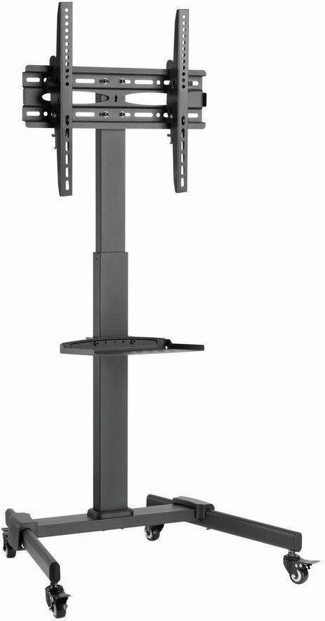GEMBIRD STOJAK POD TELEWIZOR Z REGULACJĄ WYSOKOŚCI, MOBILNY, NA KÓŁKACH 32" - 55" Uchwyt GEMBIRD STOJAK POD TELEWIZOR Z REGULACJĄ WYSOKOŚCI MOBILNY (TVS-55T-01) Uchwyt GEMBIRD STOJAK POD TELEWIZOR Z REGULACJĄ WYSOKOŚCI MOBILNY o kodzie producenta TVS-55T-01 to funkcjonalne rozwiązanie dla osób potrzebujących elastycznego i mobilnego montażu telewizora. Stojak łączy solidną konstrukcję z eleganckim, minimalistycznym designem, który pasuje do wnętrz biurowych, edukacyjnych oraz sal konferencyjnych. Regulacja wysokości pozwala dopasować ekran do różnych potrzeb użytkowników i widowni, a mobilna podstawa ułatwia przemieszczanie sprzętu bez konieczności demontażu. System mocowania jest zaprojektowany tak, by współpracować z popularnymi standardami montażowymi, co daje uniwersalność zastosowań. Zintegrowane rozwiązania do prowadzenia kabli porządkują instalację i poprawiają estetykę stanowiska. Stabilne kółka z blokadą zapewniają bezpieczne ustawienie na miejscu i wygodę transportu w razie potrzeby. Produkt TVS-55T-01 to praktyczne połączenie funkcji i stylu, przeznaczone dla użytkowników oczekujących mobilności i profesjonalnego wyglądu instalacji. Uniwersalne mocowanie i zgodność z VESA Uchwyt GEMBIRD STOJAK POD TELEWIZOR Z REGULACJĄ WYSOKOŚCI MOBILNY (TVS-55T-01) został zaprojektowany z myślą o szerokiej kompatybilności montażowej. System montażowy obsługuje powszechnie stosowane standardy, co ułatwia montaż różnych modeli telewizorów i monitorów. Dzięki temu stojak sprawdzi się zarówno w zastosowaniach domowych, jak i profesjonalnych, gdzie często zmienia się sprzęt. Solidne punkty mocowania zapewniają pewne osadzenie ekranu i minimalizują drgania. Konstrukcja umożliwia szybkie dopasowanie uchwytu do wymiarów urządzenia bez konieczności stosowania dodatkowych adapterów. To rozwiązanie dla osób, które cenią sobie prostotę instalacji i uniwersalność użytkowania. Regulacja wysokości dla optymalnego komfortu Model TVS-55T-01 oferuje płynną regulację wysokości, co pozwala na idealne dopasowanie pozycji ekranu do potrzeb widowni. Możliwość ustawienia wysokości sprzyja ergonomii pracy i komfortowi oglądania podczas prezentacji czy zajęć. Regulacja jest intuicyjna i zapewnia stabilne utrzymanie ekranu na wybranym poziomie. To szczególnie przydatne w środowiskach, gdzie ekran musi być dostosowywany do różnych grup użytkowników. Możliwość szybkiej zmiany pozycji zwiększa funkcjonalność stojaka podczas dynamicznych wydarzeń. Dzięki temu stojak TVS-55T-01 jest praktycznym narzędziem w sytuacjach wymagających elastyczności ustawień. Mobilność i bezpieczne ustawienie Stojak GEMBIRD TVS-55T-01 został wyposażony w kółka ułatwiające transport urządzenia między pomieszczeniami. Mobilność pozwala na szybkie przestawienie ekranu bez potrzeby demontażu, co oszczędza czas i wysiłek. Kółka posiadają blokady, które gwarantują stabilne i pewne ustawienie podczas użytkowania. Solidna podstawa minimalizuje ryzyko przewrócenia i zapewnia stabilność nawet przy większych gabarytach ekranu. Mobilny charakter stojaka sprawia, że jest on idealny do zastosowań szkolnych, konferencyjnych oraz eventowych. Praktyczne rozwiązania konstrukcyjne łączą wygodę transportu z bezpieczeństwem użytkowania. Porządek kabli i estetyczne wykończenie Uchwyt GEMBIRD TVS-55T-01 zwraca uwagę na estetykę instalacji dzięki zintegrowanym rozwiązaniom do prowadzenia kabli. Schludne poprowadzenie przewodów poprawia wygląd stanowiska i zmniejsza ryzyko plątaniny przewodów. Dzięki takiemu rozwiązaniu łatwiej jest utrzymać porządek i szybko zidentyfikować podłączone urządzenia. Estetyczne wykończenie konstrukcji wpisuje się w nowoczesne wnętrza i zwiększa profesjonalny charakter prezentacji. Ukryte lub uporządkowane przewody zmniejszają także ryzyko potknięć oraz uszkodzeń przewodów. To praktyczny detal, który podnosi funkcjonalność i komfort korzystania ze stojaka. Prosty montaż i trwała konstrukcja Model TVS-55T-01 wyróżnia się prostotą montażu, co umożliwia szybkie uruchomienie stanowiska bez specjalistycznych narzędzi. Instrukcja montażu i czytelne elementy łączące ułatwiają cały proces instalacji. Wykonanie z wytrzymałych materiałów zapewnia długotrwałe i niezawodne użytkowanie stojaka. Stabilna konstrukcja gwarantuje bezpieczne podtrzymanie ekranu podczas codziennego użytkowania. Dbałość o szczegóły wykonania wpływa na estetykę i trwałość produktu. To połączenie wygody montażu i solidności sprawia, że TVS-55T-01 jest pewnym wyborem dla wymagających użytkowników. Parametry techniczne - Uchwyt GEMBIRD STOJAK POD TELEWIZOR Z REGULACJĄ WYSOKOŚCI MOBILNY Konstrukcja Materiał obudowy: , Stal Waga i rozmiary Waga produktu: , 11,5 kg Wysokość produktu: , 677 mm Głębokość (max.): , 54 cm Szerokość produktu: , 1240 mm Dane opakowania Szerokość opakowania: , 800 mm Wysokość opakowania: , 300 mm Waga wraz z opakowaniem: , 11,8 kg Ilość w opakowaniu: , 1 par(y) Głębokość opakowania: , 150 mm Ergonomia Zakres kąta nachylenia: , 10 - 10° Zarządzanie okablowaniem: , Tak Koła: , Tak Regulacja wysokości: , Tak Regulacja pochylenia: , Tak Montaż Interfejs do montażu panelu: , 200 x 100 mm, 300 x 300, 300 x 200, 400 x 200, 200 x 200, 100 x 100 mm, 400 x 400, 400 x 300 Maksymalny udźwig: , 35 kg Minimalna wielkość ekranu: , 81,3 cm (32") Maksymalny uchwyt VESA: , 400 x 400 mm Maksymalna wielkość ekranu: , 139,7 cm (55") Półka: , Tak Typ mocowania: , Podłoga Minimalny uchwyt VESA: , 100 x 100 mm