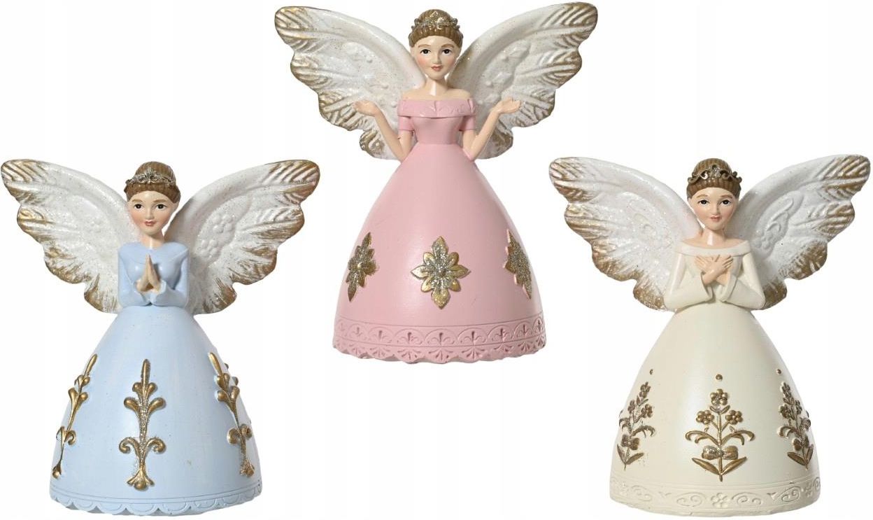 Figurka świąteczna Aniołek tworzywo sztuczne różne kolory 14cm 1szt Uroczy aniołek z tworzywa sztucznego to delikatna i elegancka ozdoba, która doskonale uzupełni świąteczny wystrój każdego wnętrza. Wykonany z dbałością o szczegóły, zachwyca subtelnymi kolorami i złotymi zdobieniami. Aniołek dostępny jest w trzech wzorach do wyboru – w różowej, błękitnej i kremowej sukience, każda z motywem kwiatowym i mieniącymi się skrzydłami. Figurka doskonale prezentuje się na komodzie, stole, parapecie lub wśród świątecznych dekoracji, wprowadzając do domu spokój, harmonię i świąteczne ciepło. Cena dotyczy zakupu jednej sztuki! Zalety 3 różne wzory do wyboru – dopasuj do swojego stylu Delikatne, eleganckie wykończenie z brokatem Wykonany z trwałego tworzywa – odporny na uszkodzenia Idealny do świątecznych aranżacji wnętrz Symbol spokoju, ochrony i świątecznej radości Prosimy o napisanie wybranego wzoru w uwagach, w innym przypadku wysyłamy wzór losowy! Parametry Rodzaj: figurka dekoracyjna Motyw: aniołek Materiał: tworzywo sztuczne Kolorystyka: różowy, niebieski, kremowy (3 wzory do wyboru) Wymiary: wysokość: 14 cm szerokość: 13,5 cm głębokość: 9 cm