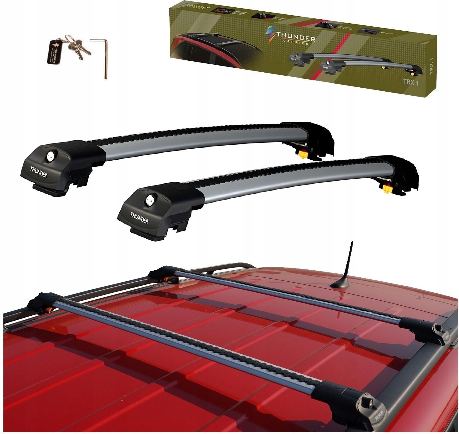 Bagażnik dachowy Thunder na relingi klasyczne. Nowa, niska linia bagażników Thunder TRX1 montowanych między relingi klasyczne. Rekomendowany do auta: HYUNDAI SANTA FE (CM) 2007-2012 - wersja z relingami klasycznymi. Poniżej linki do filmików z prezentacją oraz instrukcją montażu bagażnika: https://www.youtube.com/watch?v=OxAkv_-6FtY&list=PLLiXACM3P0DQHHpVZOXXGn4BdgPcqr751&index=7 https://www.youtube.com/watch?v=0gYqwEdYIEM&list=PLLiXACM3P0DQHHpVZOXXGn4BdgPcqr751&index=4 https://www.youtube.com/watch?v=5yUJe_hFoEM&list=PLLiXACM3P0DQHHpVZOXXGn4BdgPcqr751&index=3 Bagażnik bazowy Thunder to bardzo lekki aluminiowy bagażnik bazowy. Aerodynamiczny kształt, niski poziom hałasu podczas jazdy i wysoka jakość wykonania to główne zalety tego modelu. Bagażnik montowany miedzy relingi, dzięki czemu belki umieszczone są nisko nad dachem. Cechy produktu Dopuszczalna ładowność 100 kg (sprawdź również nośność dachu pojazdu) Nowoczesny wzór profilu aluminiowego Dodatkowa regulacja rozstawu na głowicach Aerodynamiczny kształt Bardzo cichy podczas jazdy Zabezpieczenie antykradzieżowe (zamek w obydwu głowicach) Elementy mocujące pokryte elastyczną powłoką zapobiegającą powstawaniu rys Łatwy montaż niewymagający dodatkowych narzędzi Zapasowy kluczyk Montaż akcesoriów za pomocą obejmy lub wygodnych w użyciu wsuwek (przed montażem wsuwki T należy zdemontować całą stopę). Łatwy i intuicyjny system montażu - w zestawie wszystkie niezbedne elementy. Górna szyna T zabezpieczona jest specjalną gumą.